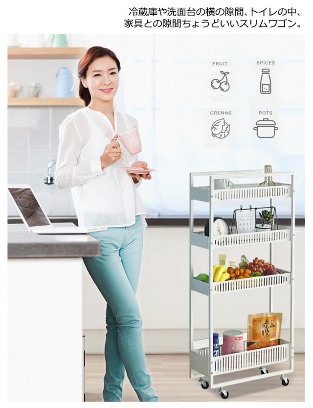 | 3段 / 4段 幅19cm スチール製 キッチンの隙間に収まるスリムな収納ワゴン | |