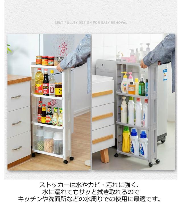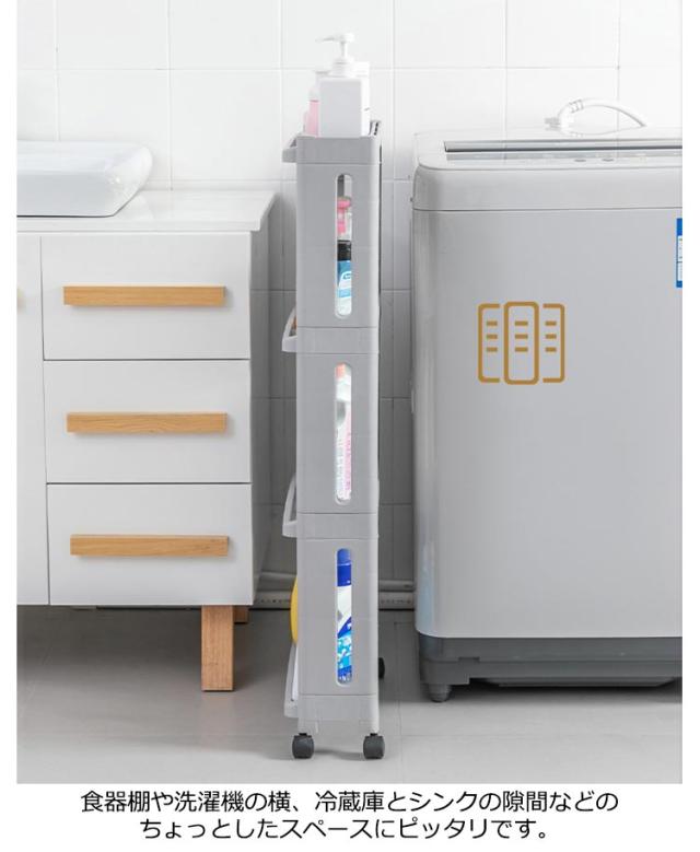 | 幅わずか13.8cmでもたっぷり収納!隙間を有効活用 3段 4段 キッチンや洗面所などの空いたスペースを有効活用できるの幅14cmキッチンストッカー シンプルなデザインなので、キッチンはもちろんランドリーなど場所を選ばずお使い頂けます。 プラスチック製なので軽くて簡単に移動ができ、水周りでも安心です。 食器棚や洗濯機の横、冷蔵庫とシンクの隙間などのちょっとしたスペースにピッタリです。 ストッカーは水やカビ・汚れに強く、水に濡れてもサッと拭き取れるのでキッチンや洗面所などの水周りでの使用に最適です。 | |