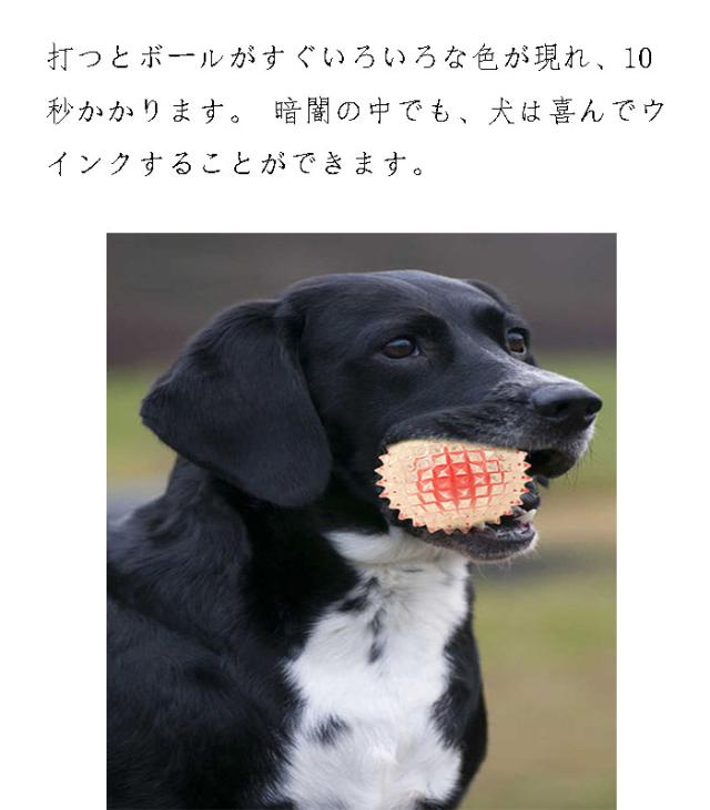 | いつでもどこでも何度でも遊べるおもちゃ ♪ 愛犬が遊び同時に歯を磨い、噛みながら歯の汚れや歯垢を落とし、清潔することができます。 打つとボールがすぐいろいろな色が現れ、10秒かかります。 暗闇の中でも、犬は喜んでウインクすることができます。 弾力性のある犬のボールは、犬を運動させて幸せにするだけでなく、犬の敏感性を鍛えます。 犬と遊びながら犬との関係を促進します。 小型犬、中型犬、大型犬に合う。犬と楽しく遊び、トレーニングができます。 | |