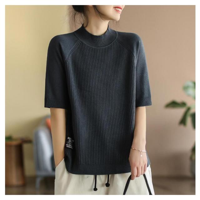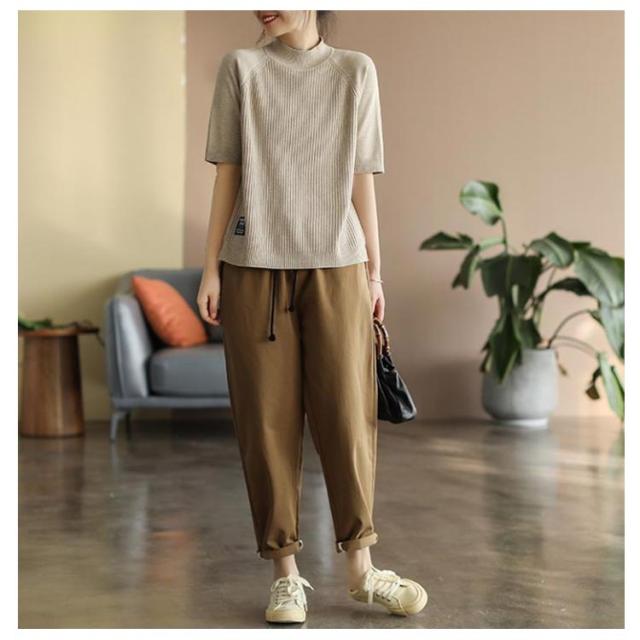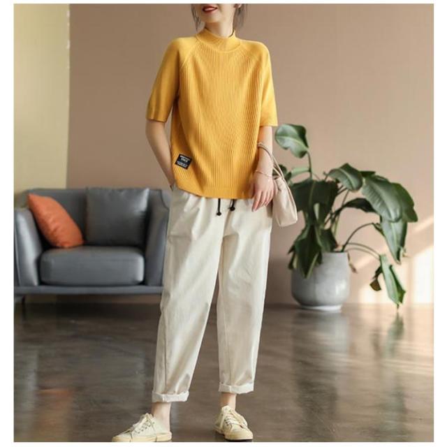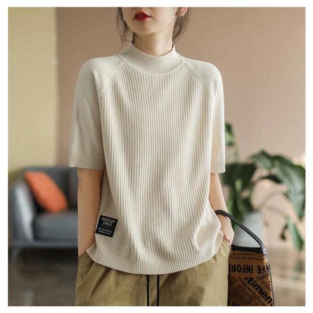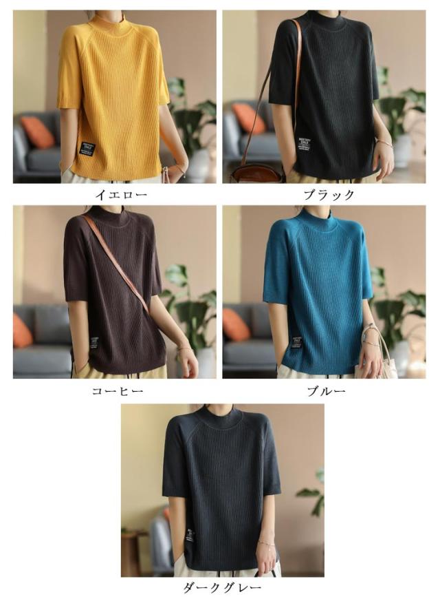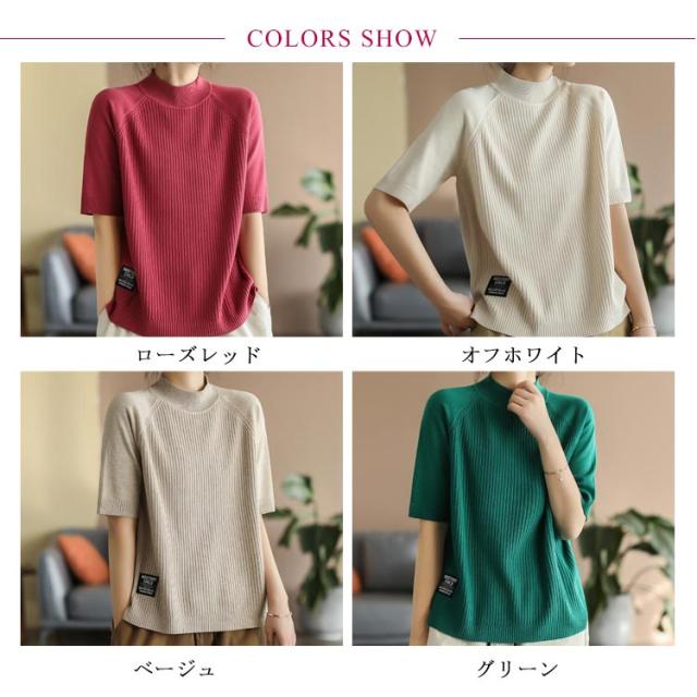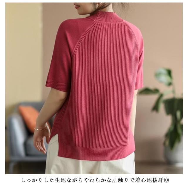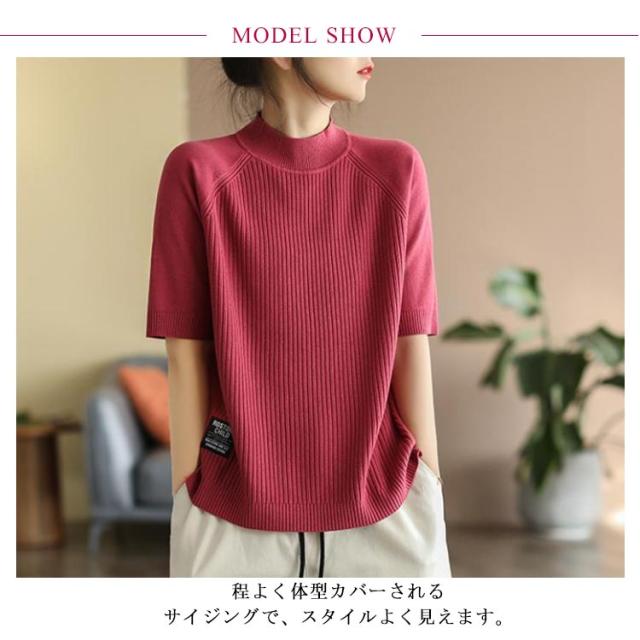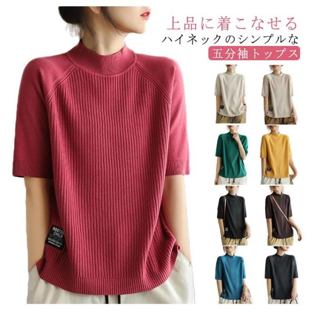 レディース カットソー リブニット トップス サマーニット 春 サマーニット サマー ボートネック 夏 ニット トップス プルオーバー リブニット 半袖 五分丈袖 半袖ニット 無地 シャツ フェミニン シンプル カジュアルオフィス