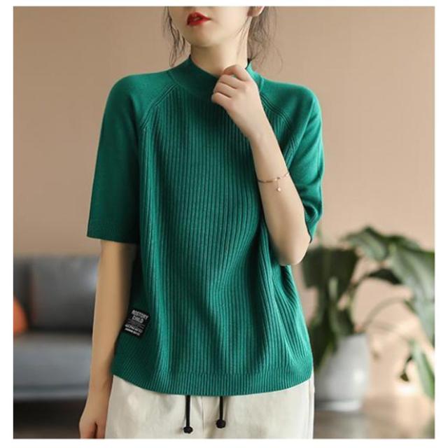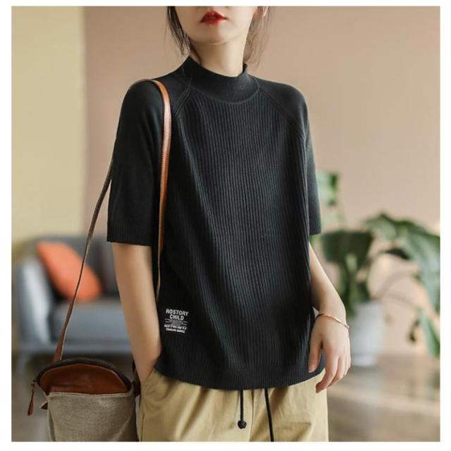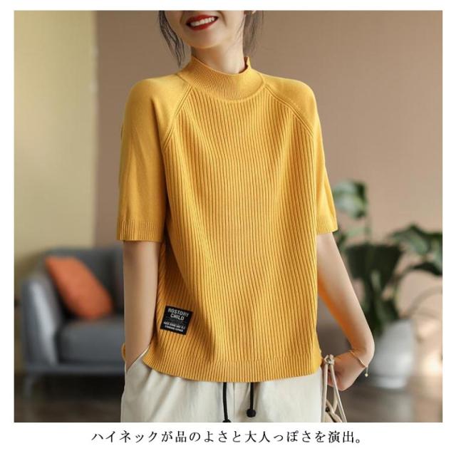 | 上品に着こなせるハイネックのシンプルな五分袖トップス。 程よく体型カバーされるサイジングで、スタイルよく見えます。 しっかりした生地ながらやわらかな肌触りで着心地抜群◎ ハイネックが品のよさと大人っぽさを演出。 | |