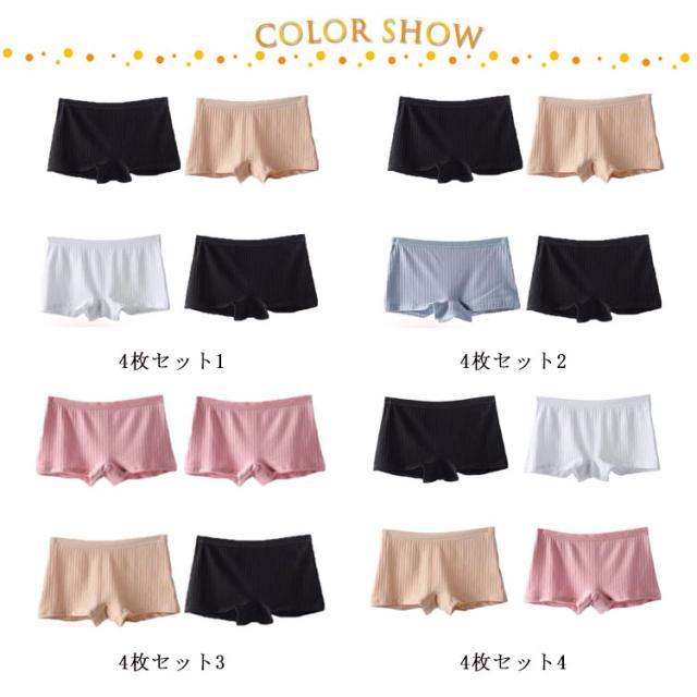 ボクサーパンツ ショーツ ボックスショーツ 4枚組 レディース 下着 肌着 スパッツ ショーツ ショートパンツ インナーパンツ ボクサーパンツ ハイウエスト スリム 綿 スパンデックス ショーツ ストレッチ