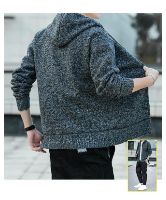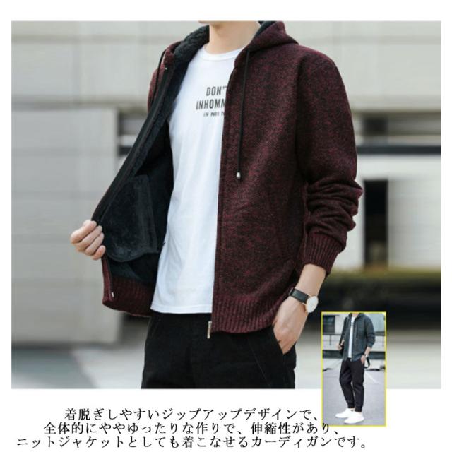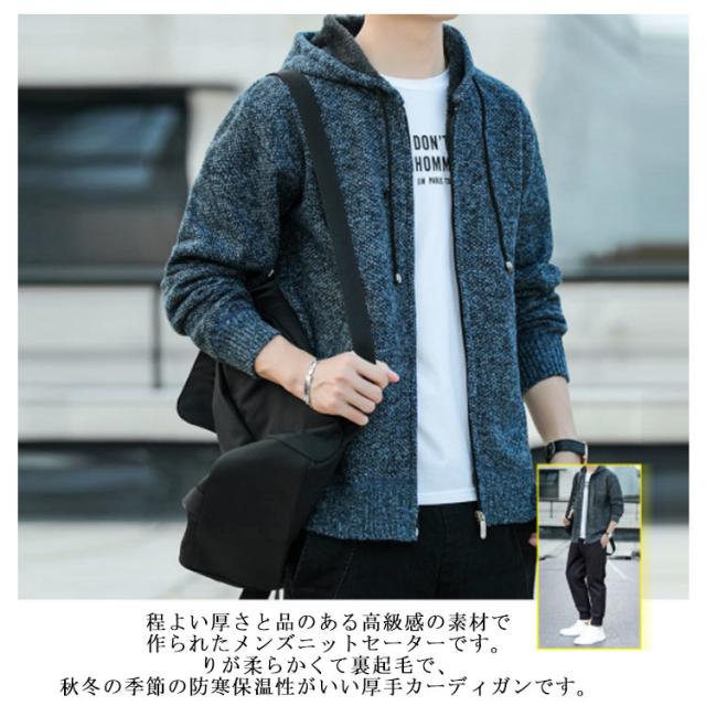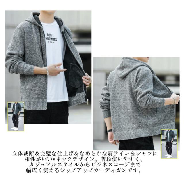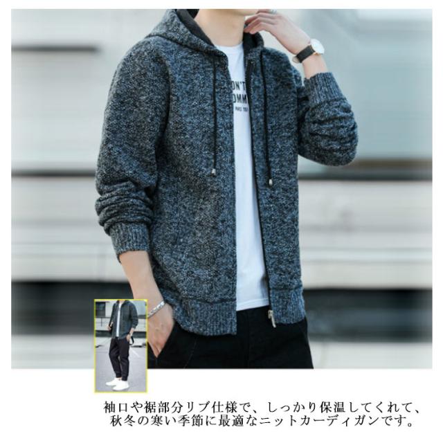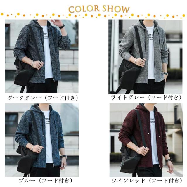ニットジャケット ニットカーディガン メンズ ジップアップジャケット フード付き 無地 ニット カーディガン ファスナー アウター パーカー カジュアル 秋 冬 大きいサイズ 送料無料 m l xl 2xl 3xl 4xl