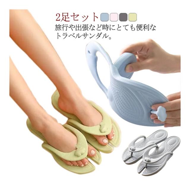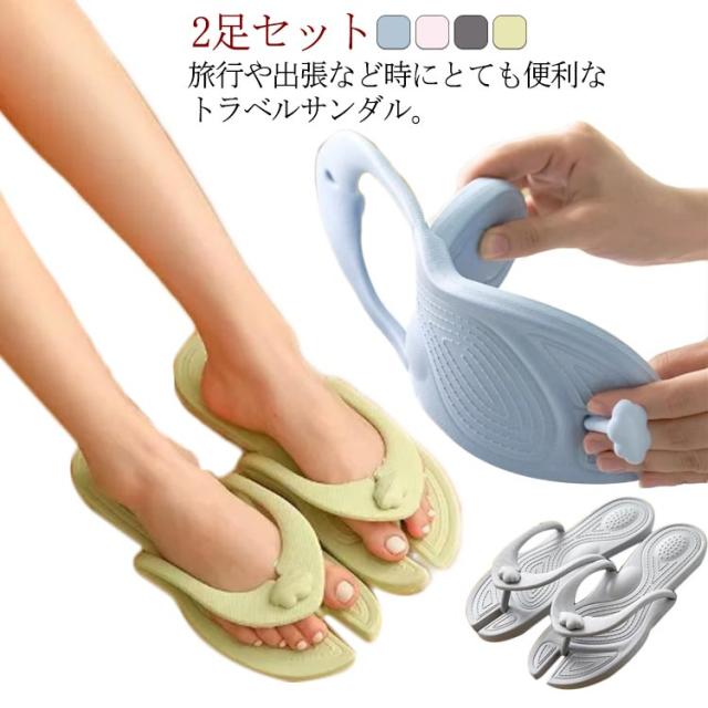 トラベルサンダル スリッパ 2足セット 2足セット 携帯 温泉 バススリッパ シャワーサンダル 折りたたみサンダル 携帯用 旅行 トラベルグッズ トラベル用品 出張 お泊り 飛行機 バス 室内履き ラバースリッパ サンダル ラバーサンダル トング
