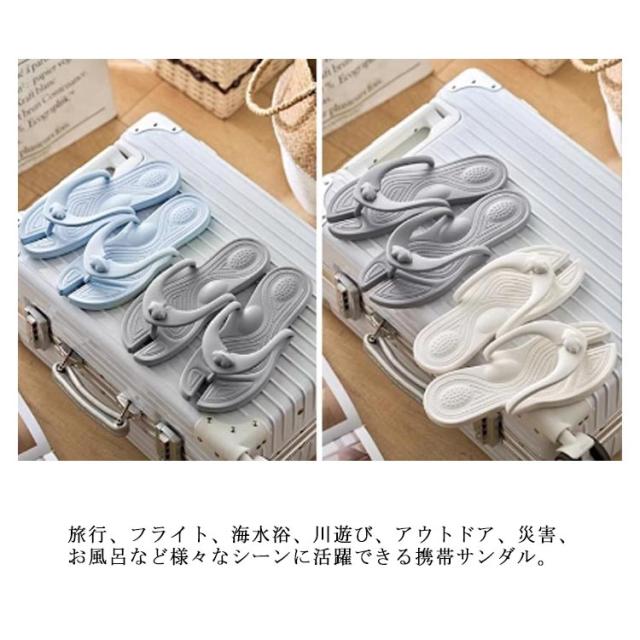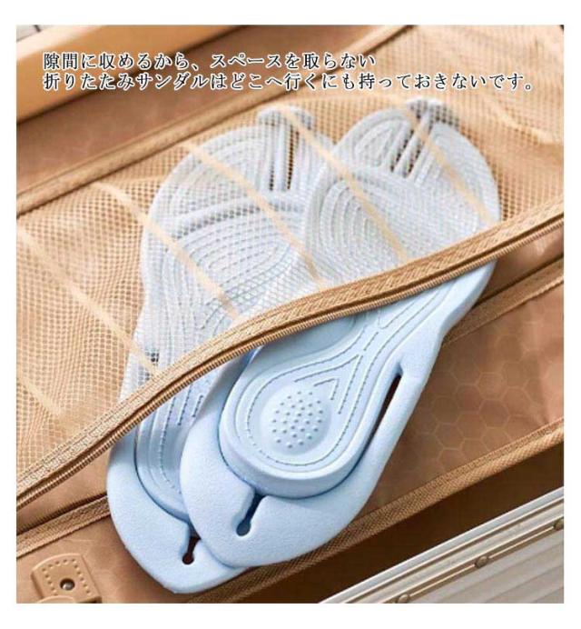 | 旅行や出張など時にとても便利なトラベルサンダル。 ふわふわ履き心地よいラバーサンダル、濡れてもOK。底は凸凹仕様で滑りにくい。 シャワーや温泉、海、ビーチなど水周りに大活躍する折りたたみスリッパ。 隙間に収めるから、スペースを取らない折りたたみサンダルはどこへ行くにも持っておきないです。 汚れてもしゃぶしゃぶ洗えるのでお手入れ簡単。 旅行、フライト、海水浴、川遊び、アウトドア、災害、お風呂など様々なシーンに活躍できる携帯サンダル。 | |