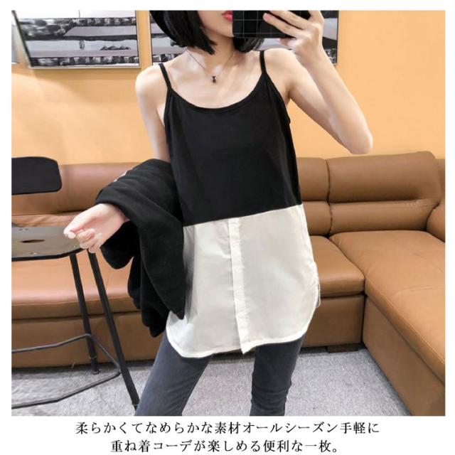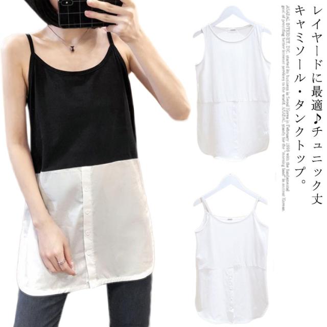 送料無料 レイヤード キャミソール 重ね着 インナー タンクトップ チュニック丈 レディース ロング丈 キャミ 重ね着 30代 40代 50代