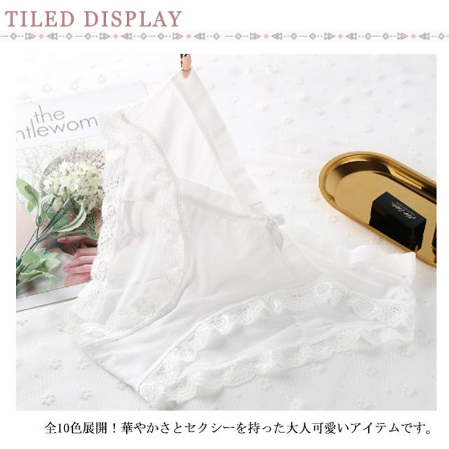 | 可愛らしいさとセクシーさを兼ね備えたお洒落な女性用下着です! クロッチ部は綿を採用して、蒸れにくく、いつでもサラサラと快適です。 脚ぐり部分はレースなのでショーツラインが響きにくく、タイトなボトムスにも最適です。 伸縮性が高く、スムースで柔らかな肌ざわりが気持ち良い素材感です。 全10色展開!華やかさとセクシーを持った大人可愛いアイテムです。 | |