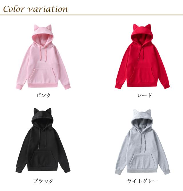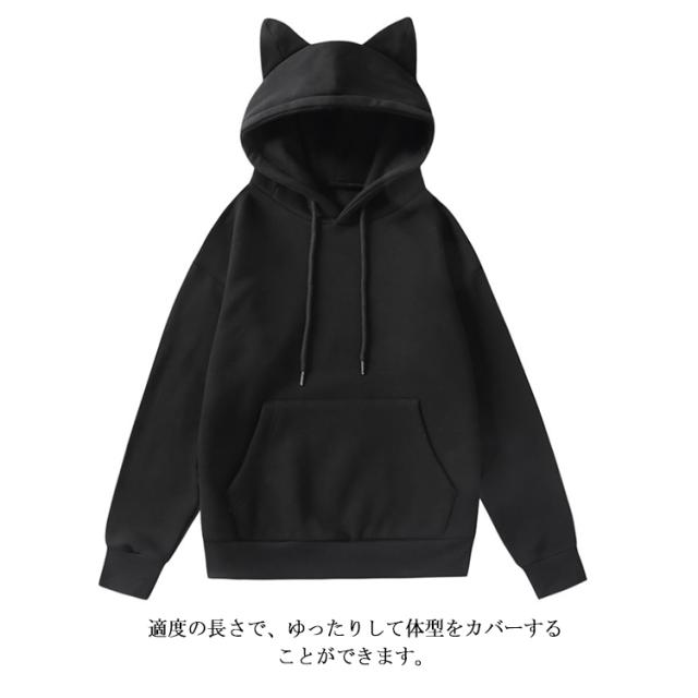 | 着心地が暖かい快適な猫耳パーカー。 フードにネコ耳が付いており、後ろから見てもキュート。 肌触りが柔らかくて、通気性が良い。 シンプル無地で、着回し抜群!春秋冬とロングシーズンで使いまわせます。 裏起毛のデザインで春秋にトップスで、冬にはコートの下にあるインナーとしてもOKです! 適度の長さで、ゆったりして体型をカバーすることができます。 ボトムス次第でカジュアルにもきれいめにもなれる万能な一枚です。 | |