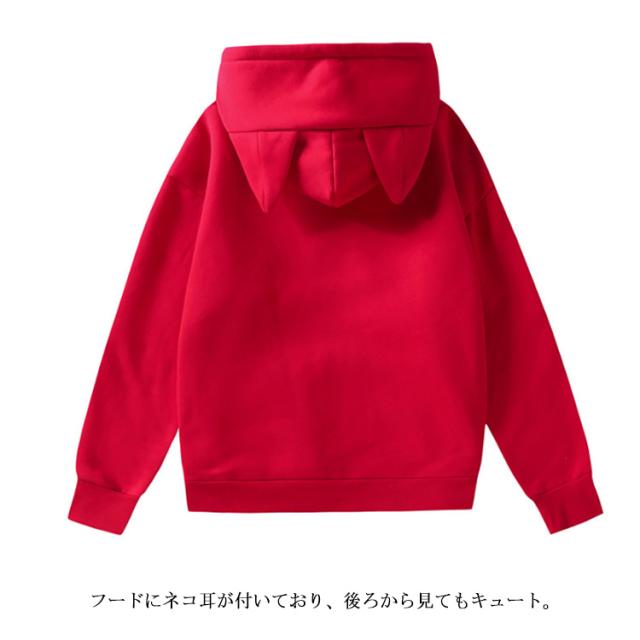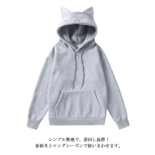 猫耳パーカー パーカー レディース 春 秋 冬 無地パーカー 長袖 プルオーバー フード付き トップス 裏起毛パーカー 大きいサイズ カップルパーカー ペアルック トップス トレーナー スウェット ゆったり カジュアル かわいい おしゃれ