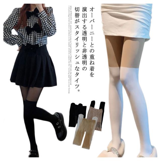 タイツ ストッキング 切り替え レディース フェイク オーバーニーハイソックス 一体型 デニール レギンス 透け感 シアータイツ 切替 フェイクタイツ スパッツ 細見え スッキリ 美脚 脚長 可愛い 通学 通勤 普段着 コスプレ衣装