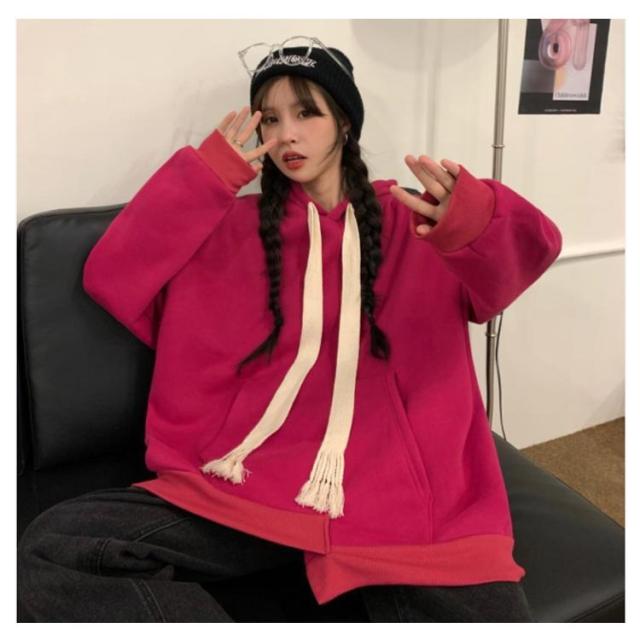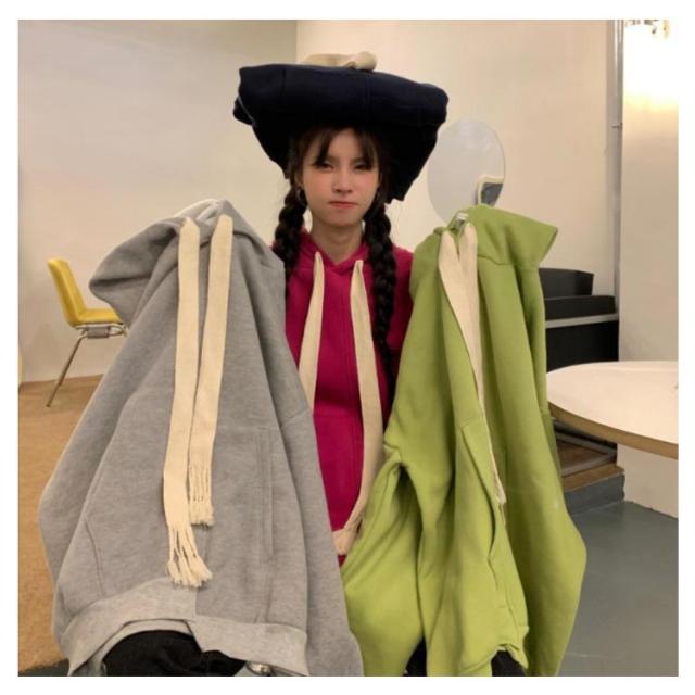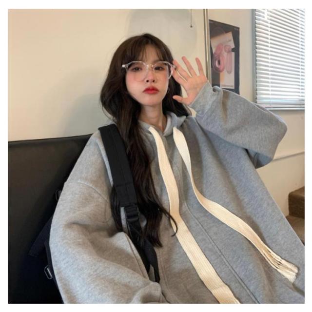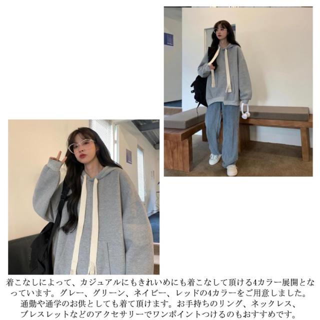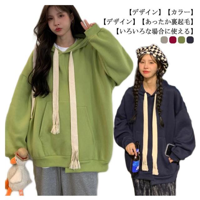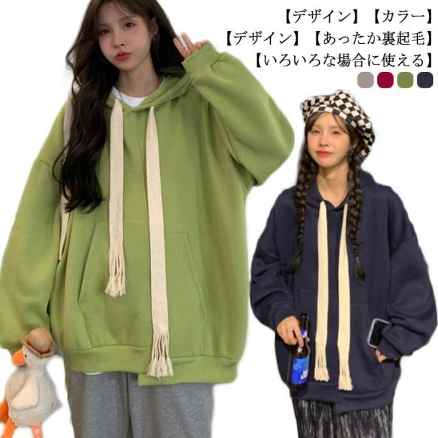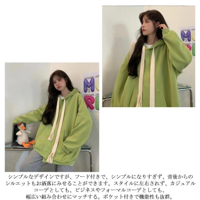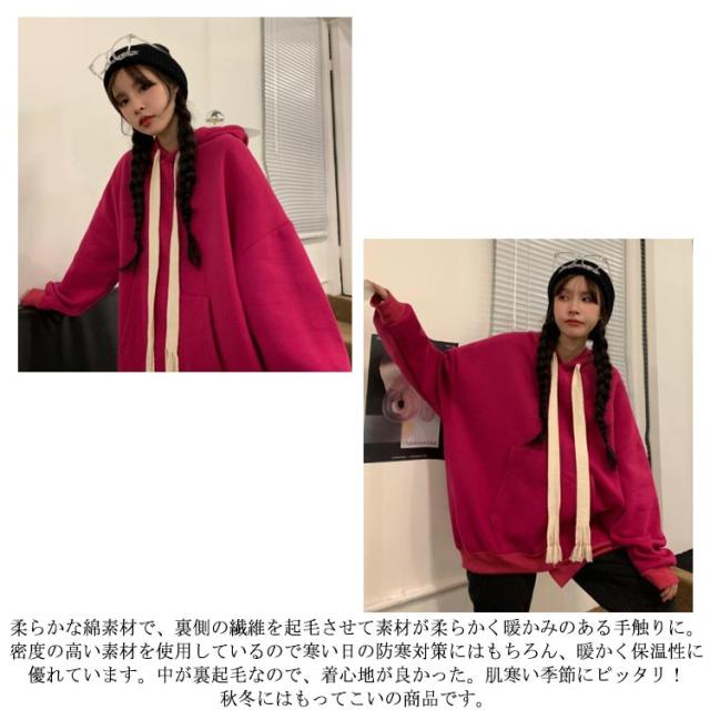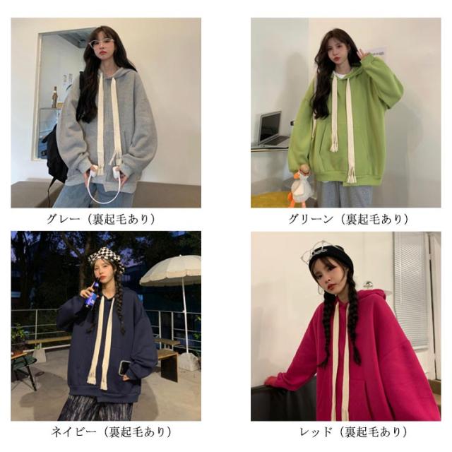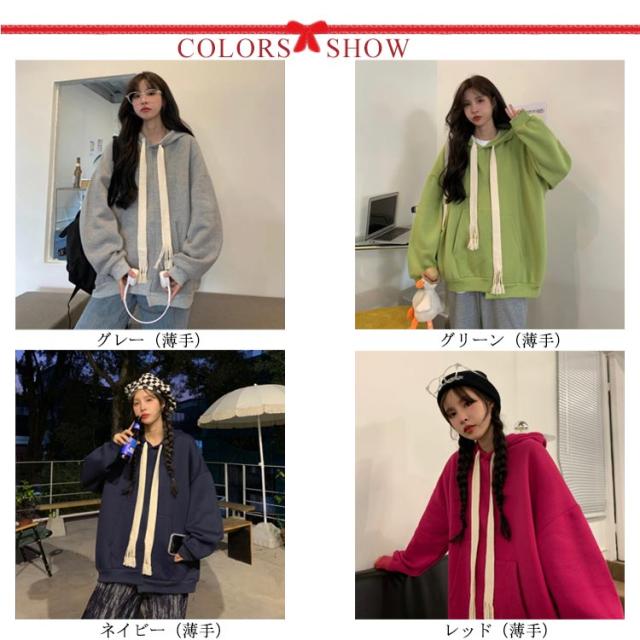 裏起毛&薄手 パーカー レディース 大きめ おしゃれ 無地 韓国ファッション 大きいサイズ プルオーバー かわいい 長袖 ビックシルエット ゆったり カジュアル 春 秋 送料無料