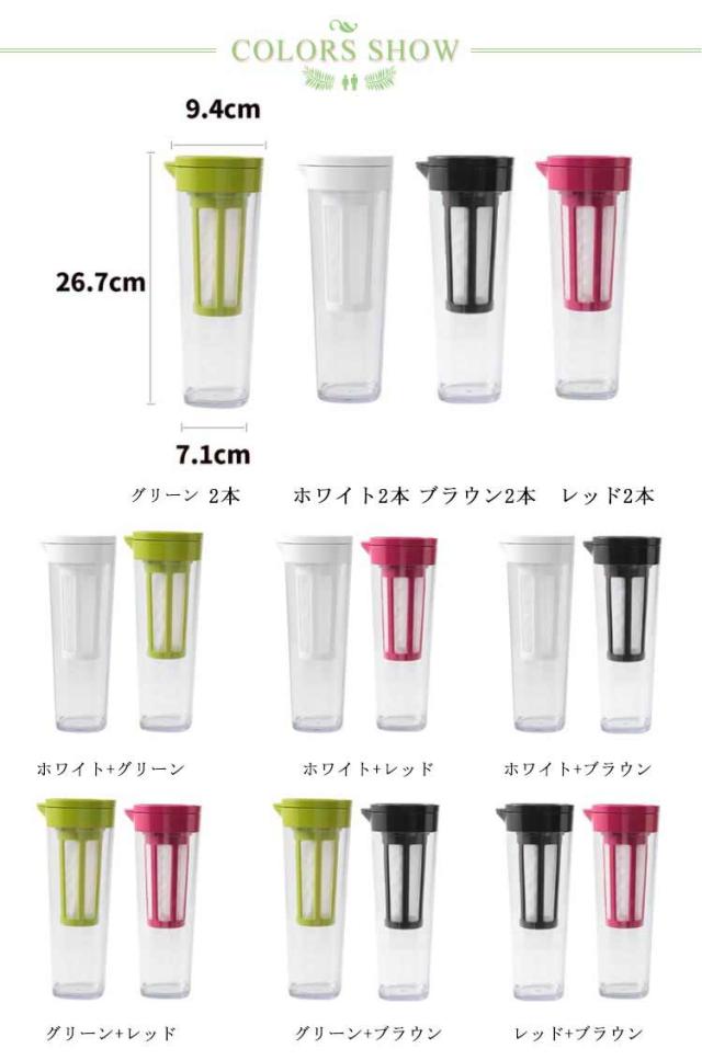 1.1L スリムジャグ お茶ポット 耐熱 麦茶ポット コーヒージャグ 2本セット 横置き 洗いやすい 冷蔵庫 広口 持ちやすい ピッチャー 冷水筒 フィルター付き 家庭用 麦茶ポット