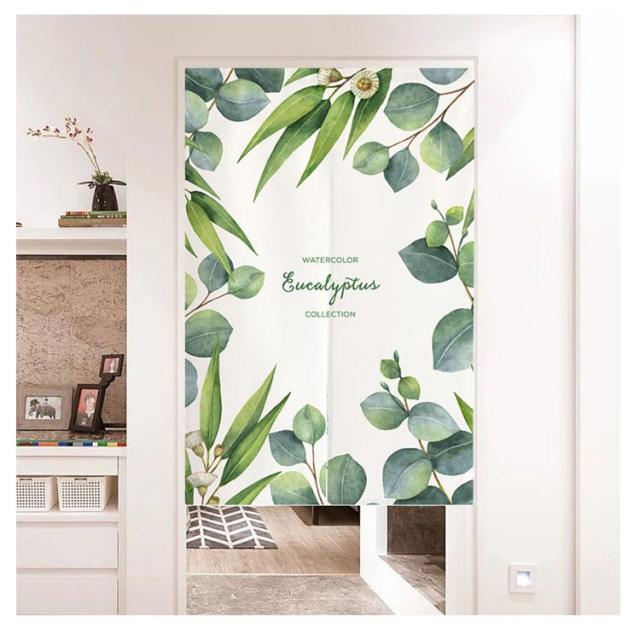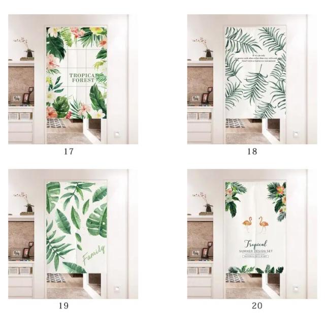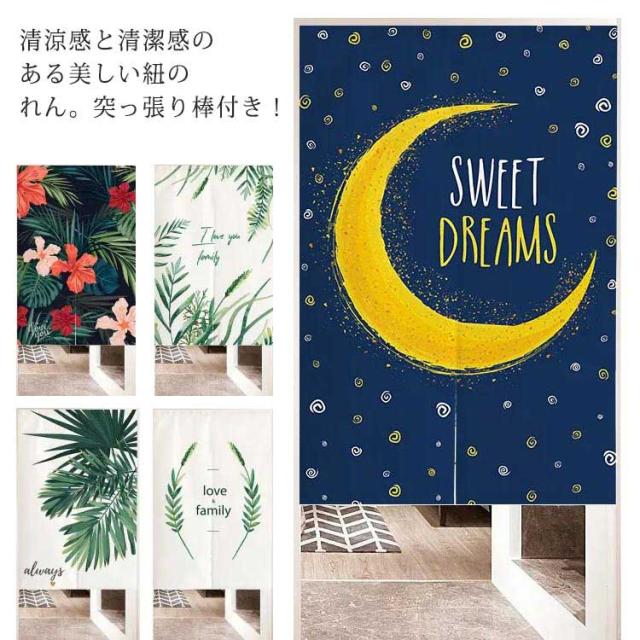 ひものれん 紐のれん 紐 ヒモ 間仕切りカーテン 暖簾 目隠し カーテン つっぱり式 突っ張り棒付き のれん カーテン 植物柄 葉 遮光 遮熱 おしゃれ 85×150cm 簡単取付け シンプル インテリア 北欧 送料無料