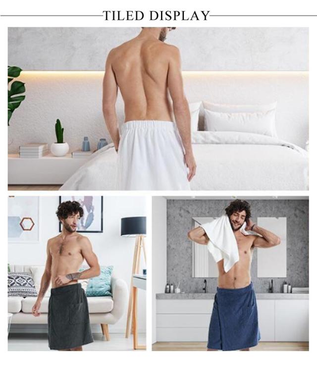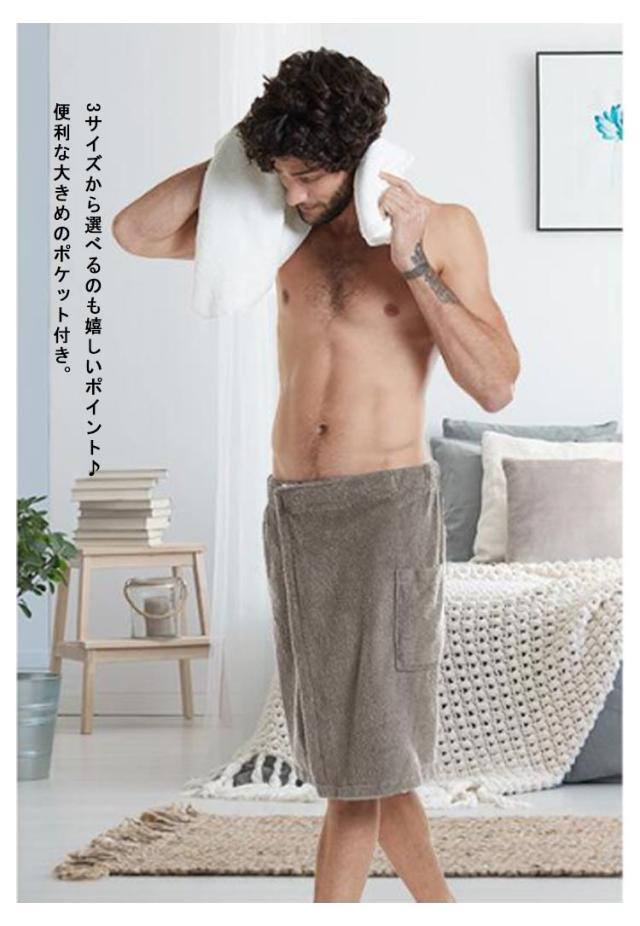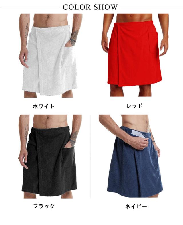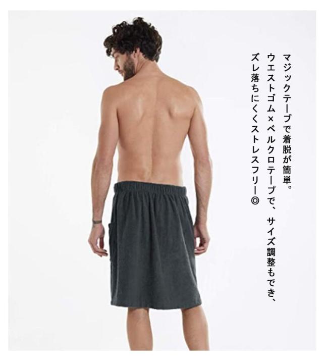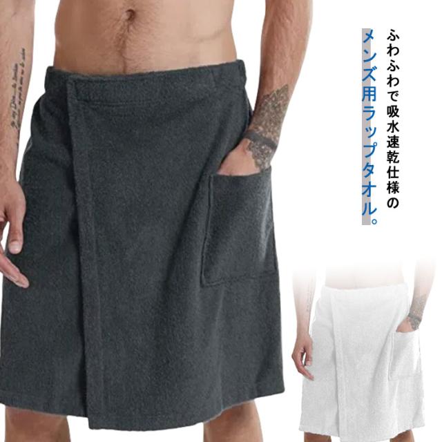 | ふわふわで吸水速乾仕様のメンズ用ラップタオル。 軽くて肌触りの優しい柔らかな素材。 マジックテープで着脱が簡単。 ウエストゴム×ベルクロテープで、サイズ調整もでき、ズレ落ちにくくストレスフリー◎ 3サイズから選べるのも嬉しいポイント♪ 便利な大きめのポケット付き。 | |