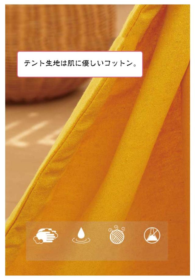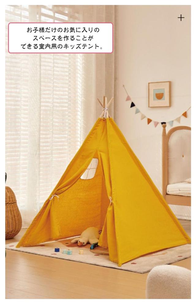 | 創造力を豊かにするキッズテント お子様だけのお気に入りのスペースを作ることができる室内用のキッズテント。 おもちゃを置いた秘密基地や、好きなぬいぐるみに囲まれたお昼寝スペースなど、個性溢れる空間を作り出すことができます。 お子様の創造力を豊かにするのに最適なアイテムです。 テント生地は肌に優しいコットン。柱は天然木で作られているので、安心してお使い頂けます。 柱をつなげて布に通し、立てて上部を固定するだけで、簡単に組み立てることができます。 シンプルな色使いの北欧風デザインで、室内においてもおしゃれな雰囲気。 イルミネーションやぬいぐるみなどで飾り付けると、可愛い夢のような空間になります。お誕生日や出産祝いなどのプレゼントにも最適です。 | |