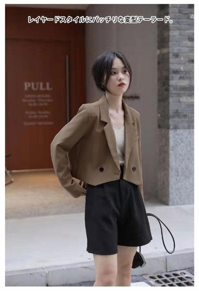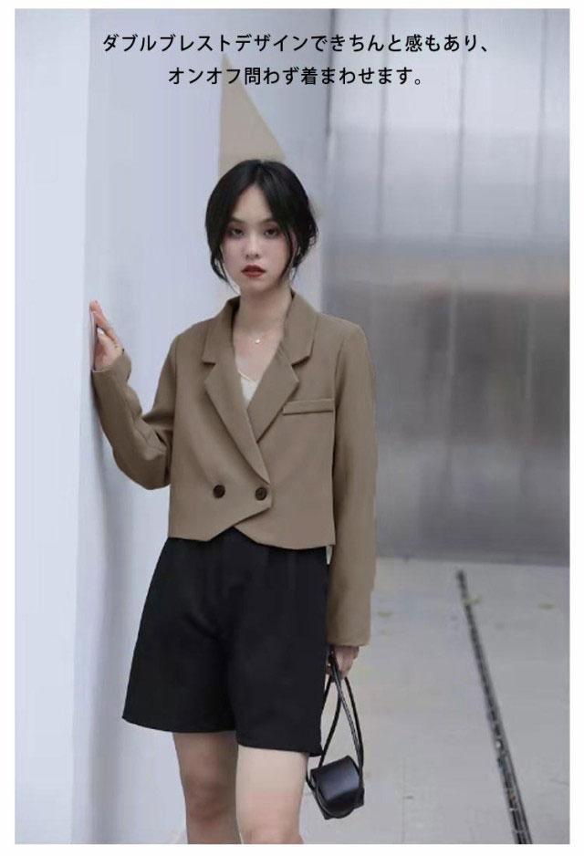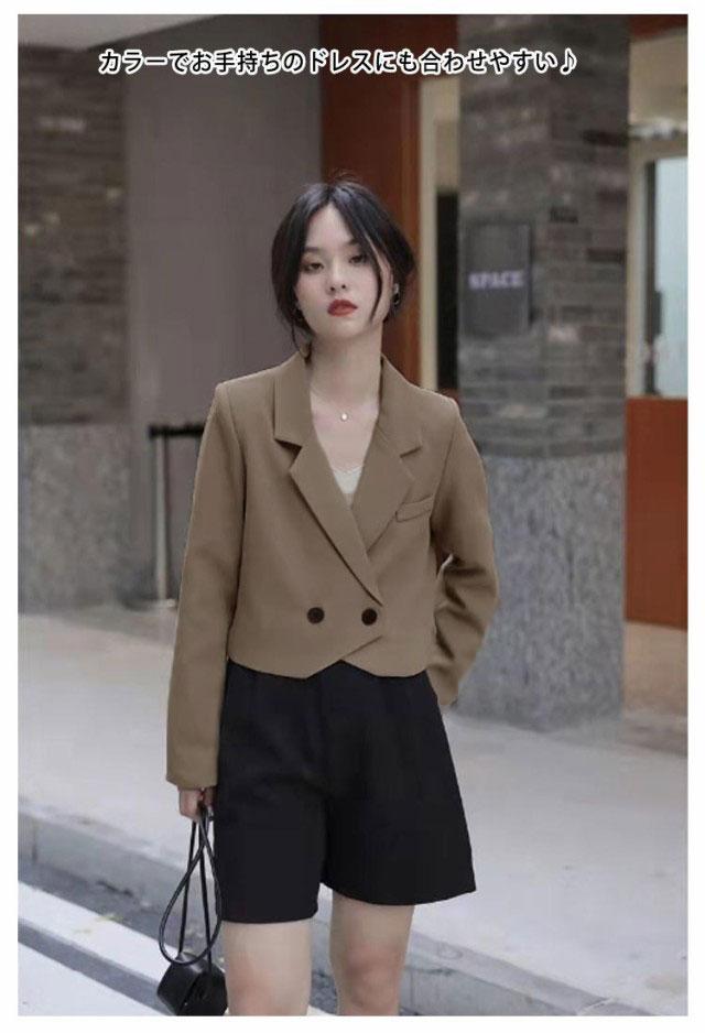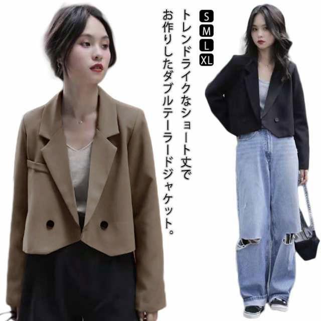 ダブル ショートジャケット レディース テーラード テーラードジャケット 秋 ショート ジャケット ショート 長袖 アウター 夏 ショートテーラード ショート丈 裏地あり ゆったり トップス 春 ライトアウター 羽織り コート ショートコート お洒落 可愛い カジュアル 薄手
