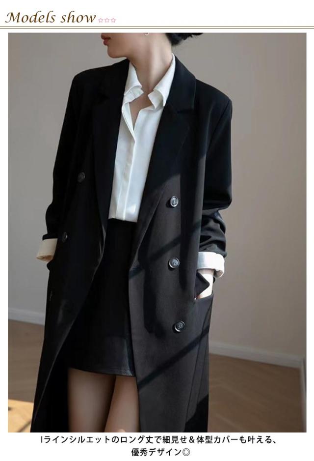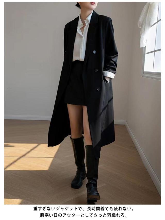 ロング ダブル マキシ レディース 夏 ロングジャケット 春 テーラードジャケット ジャケット 長袖 ミモレ丈 丈 アウター ロングテーラード トップス ゆったり 裏地 コート ジャケット オフィス 羽織り ライトアウター ロングコート お洒落 上品 テーラード カジュアル 秋
