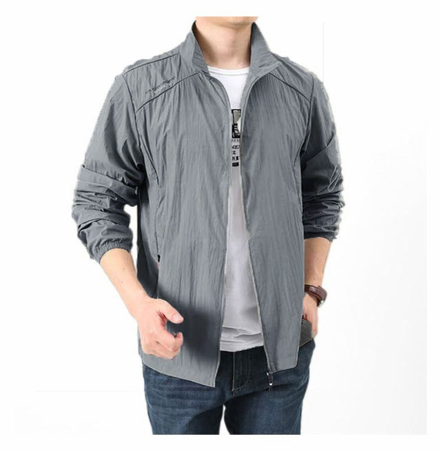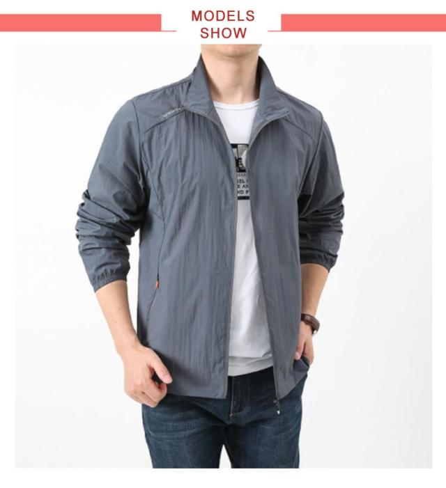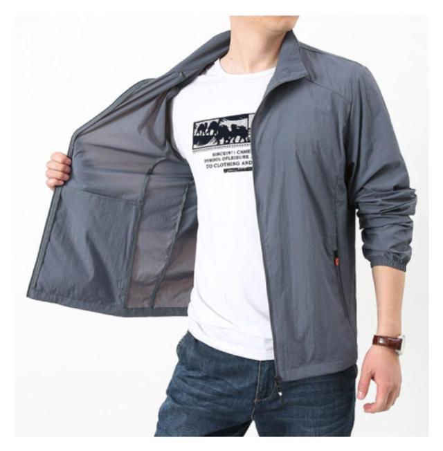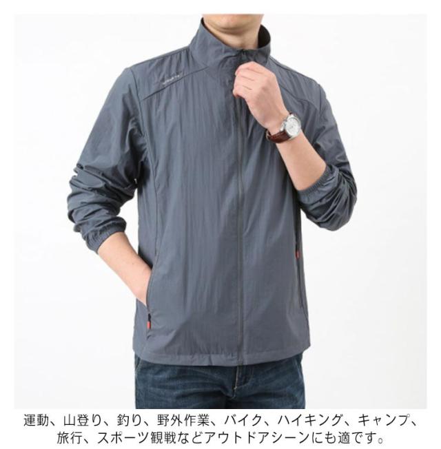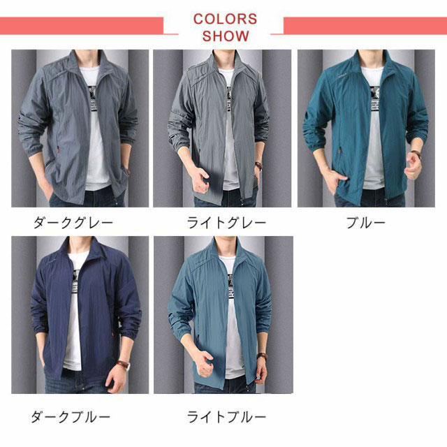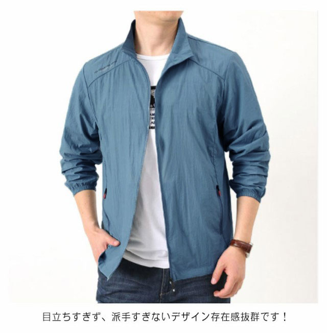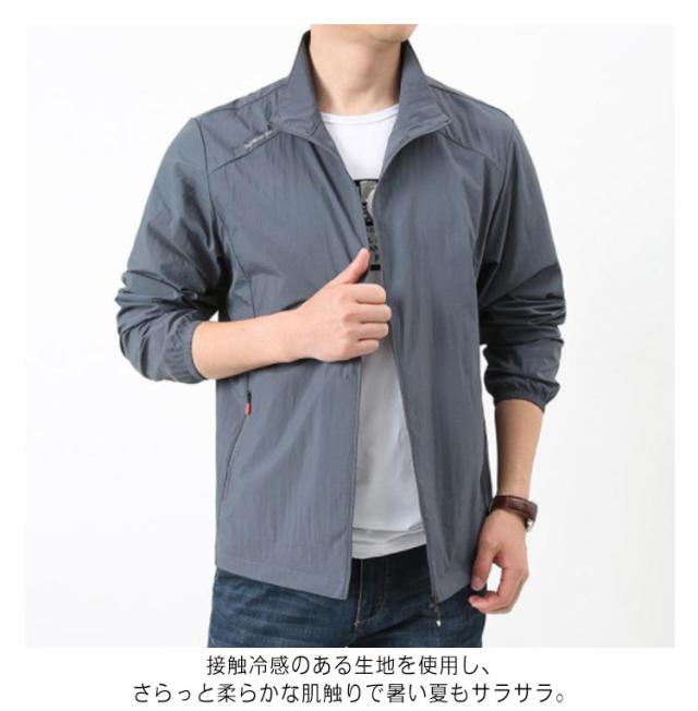 ラッシュパーカー UVカット メンズ 夏用 薄手 接触冷感 ジャケット 長袖 フードなし 立ち襟 コート 涼しい ひんやり 吸汗 速乾 紫外線対策 日焼け防止 冷房対策 ジャンパー 無地 軽量 通気性 ブルゾン 大きいサイズ カジュアル アウトドア スポーツ用 送料無料
