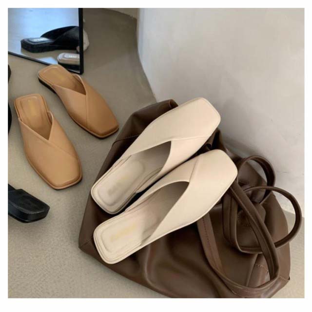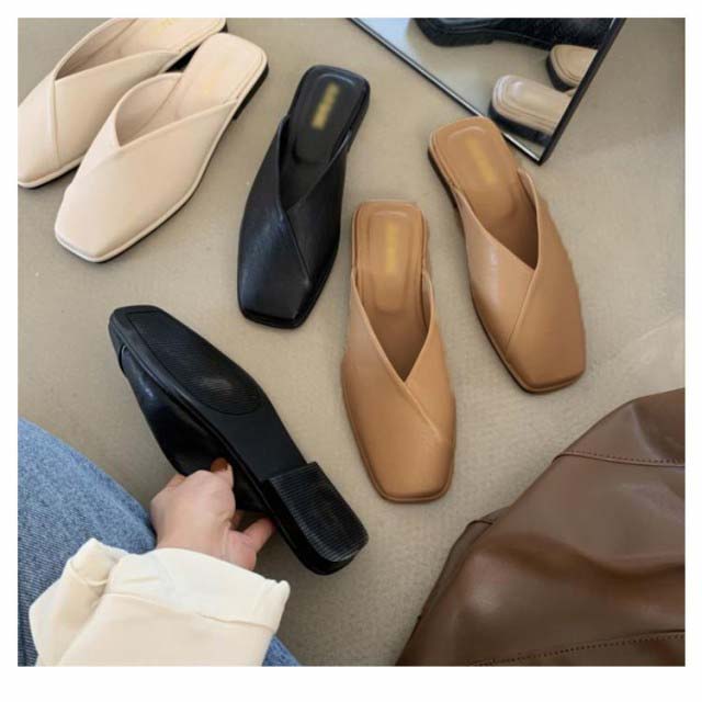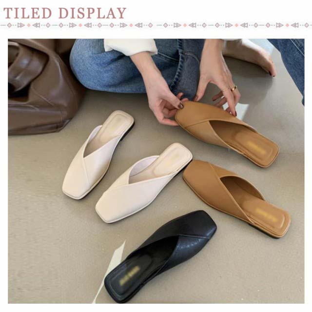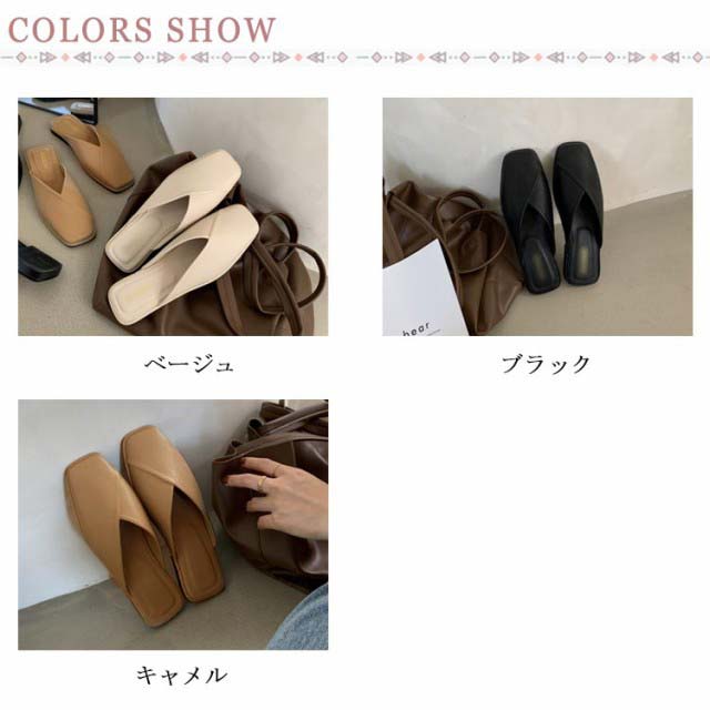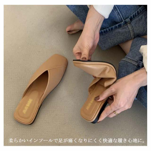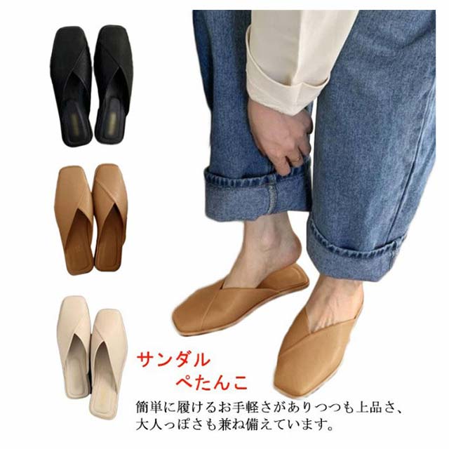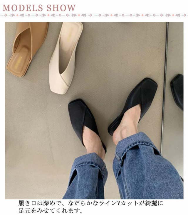 ミュール レディース パンプス サンダル?フラット ぺたんこ 歩きやすい スリッパ?ルームシューズ オフィス 大きいサイズ 小さいサイズ つっかけ スクエアトゥ Vカット 柔らかい 痛くない 春夏 秋 フォーマル 美脚 送料無料