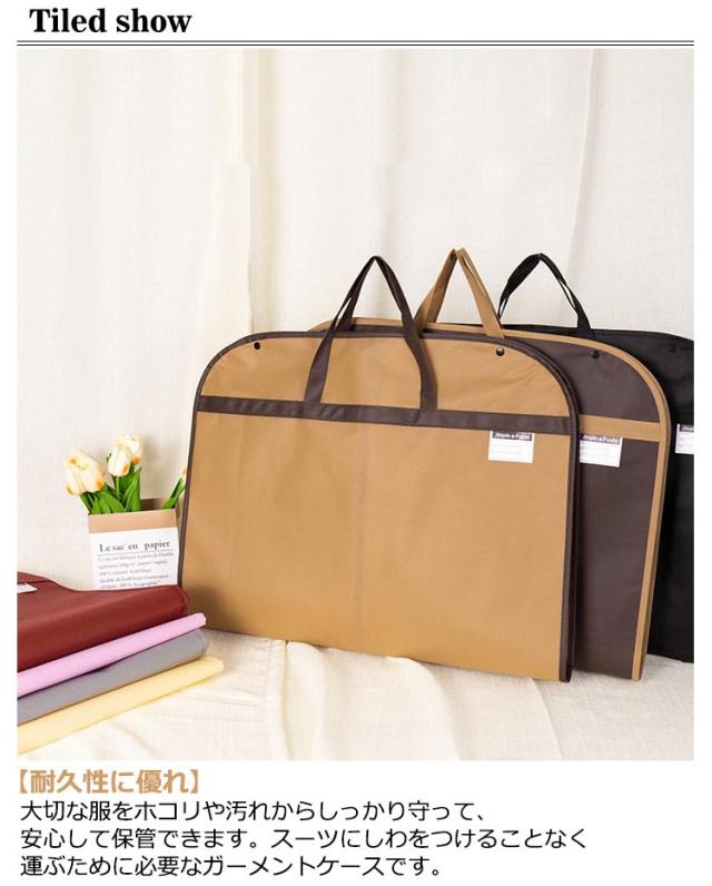 | 【耐久性に優れ】 大切な服をホコリや汚れからしっかり守って、安心して保管できます。 スーツにしわをつけることなく運ぶために必要なガーメントケースです。 【優れた撥水性・防汚性】 水をはじく撥水加工がされているので雨の日の移動も安心。 雨や水に濡れても、乾いた布で拭き取って乾かせば問題なくご使用頂けます※完全防水ではありません。ファスナー、縫い目等から浸水する場合がございますので、ご注意ください。 【大活躍】 出張、就活、結婚式、冠婚葬祭等、あなたの大切な衣類をシワから守ります。プレゼントとしても最適! | |