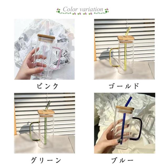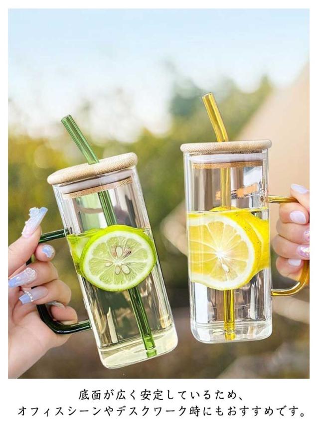持ち手 蓋付き 耐熱 冷温両用 大容量 直飲み おしゃれ お酒 ティーカップ ボルト 麦茶コップ 400ml 直飲み ストロー付 おしゃれ ガラスコップ コーヒーカップ マグカップ ハンドル付き 竹製蓋 クリア コーヒー 紅茶 シンプル マグボトル