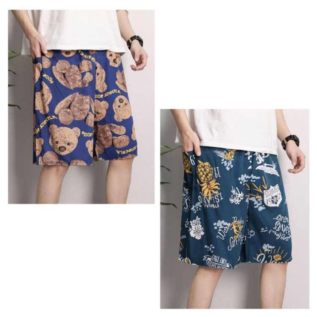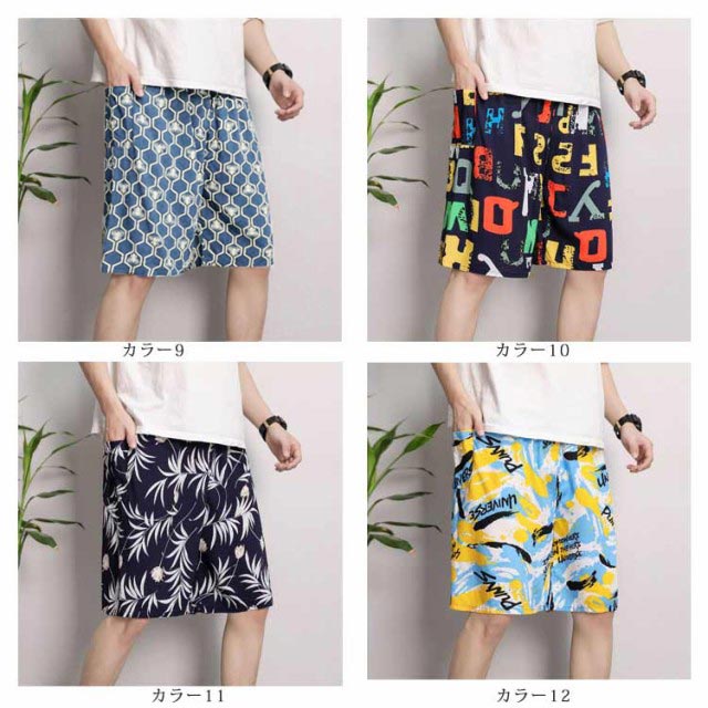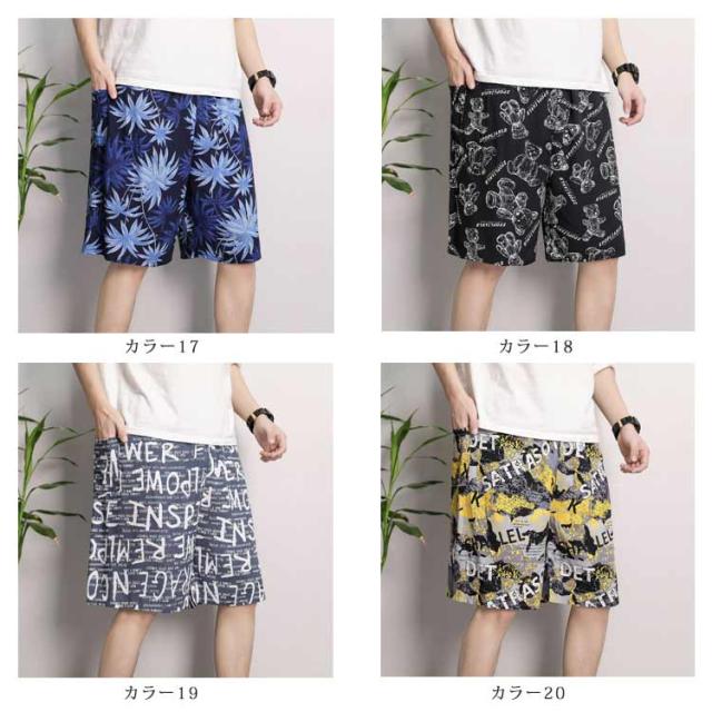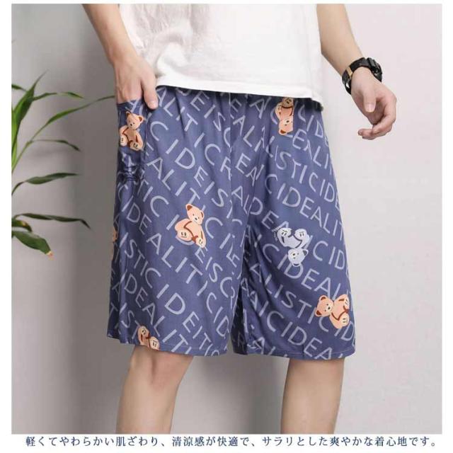 ルームパンツ メンズ ステテコ パジャマ 夏 薄手 大きいサイズ ハーフパンツ 5分丈 ショートパンツ カジュアル柄 通気性 おしゃれ 派手 すててこ ルームウェア ズボン リラックス ワイドパンツ 部屋着 ウエストゴム 送料無料