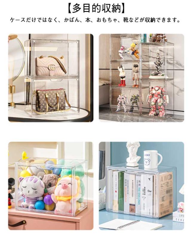 透明 おもちゃ ぬいぐるみ収納 缶バッジ 収納ケース 靴 推し活 CD収納 小物収納 書類 缶バッジ フィギュアケース 化粧品 靴箱 本棚 卓上収納 展示用 収納ボックス シューズケース バック収納 アクリル