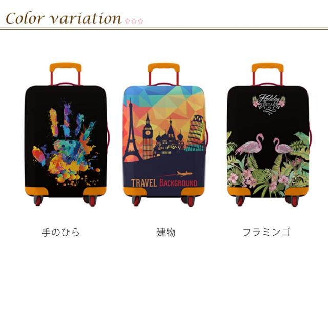 | すっぽりかぶせて、汚れや傷を防ぎます。 取手から通してファスナーとゴムベルトで留めるだけ! ハンドルやキャリーバーの引き出しやすさ、持ち運びを考慮したデザイン。 伸縮性のある生地でピタリとフィットします。 使用可能スーツケースサイズ:幅38〜43×奥行25〜27×高さ57〜62cm 個性的なデザインで空港でも見つけやすいです! 汚れても洗えるからいつでも清潔♪ 使わないときは折りたたんでコンパクトに収納可能。 大切なスーツケースを長く綺麗に使うために、旅行の必需品としてひとつ持っておくととても便利です◎ | |