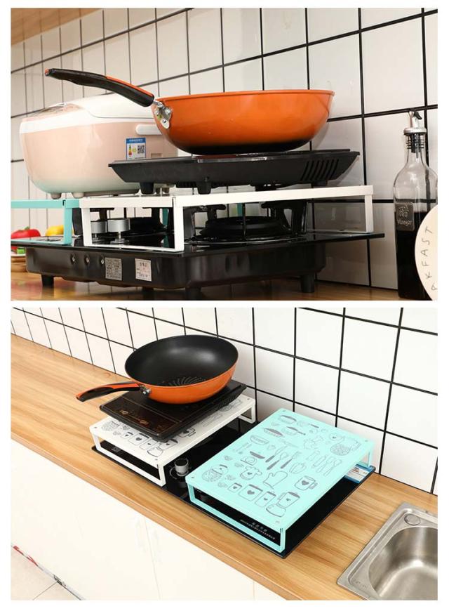| ガスコンロの上が収納・作業スペースに早変わり! 調理中のちょい置きはもちろん、配膳台としても活躍します。 金属製、生活感が出がちなコンロ周りにスタイリッシュなスペースに。 掃除も簡単で長持ちします! コンロの上を作業スペースとして使えるうえ、汚れやほこりも防げます。 | |