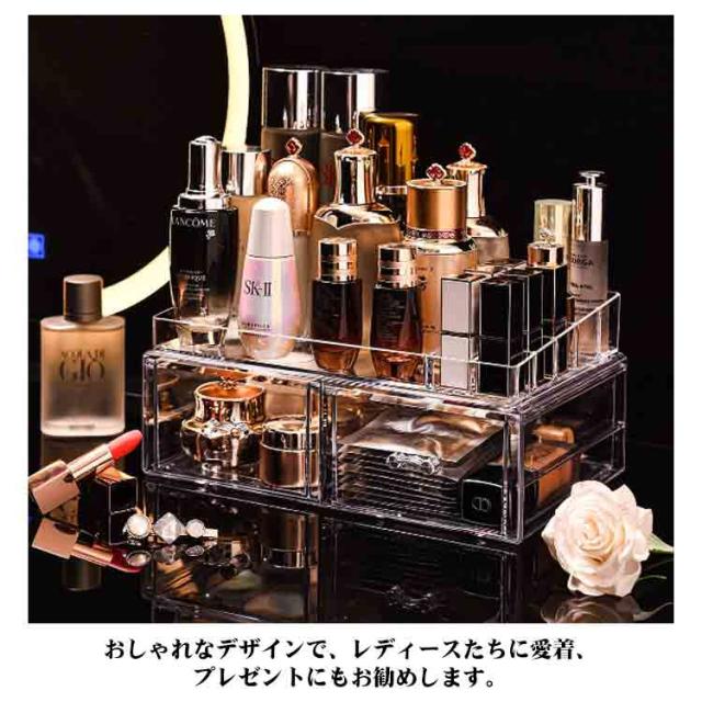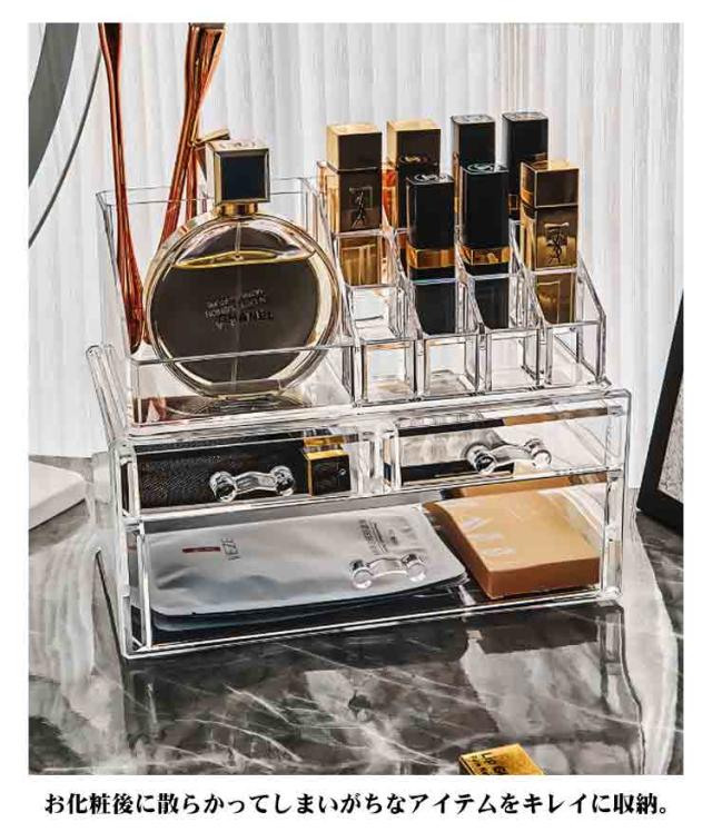 | バラバラになりやすい小物を美しく収納でき、お部屋やオフィスに置くのにぴったりのアイテムです。 コスメ、メイク道具だけじゃなくて、ジュエリー、アクセサリーなどの小物の収納にも最適です。 クリアケースだから、何をどこにしまったのかが一目瞭然! お化粧後に散らかってしまいがちなアイテムをキレイに収納。 お部屋の雰囲気を邪魔しないシンプルなデザイン。寝室、化粧台、バスルームなど、さまざまな場所でご利用いただけます。 おしゃれなデザインで、レディースたちに愛着、プレゼントにもお勧めします。 | |