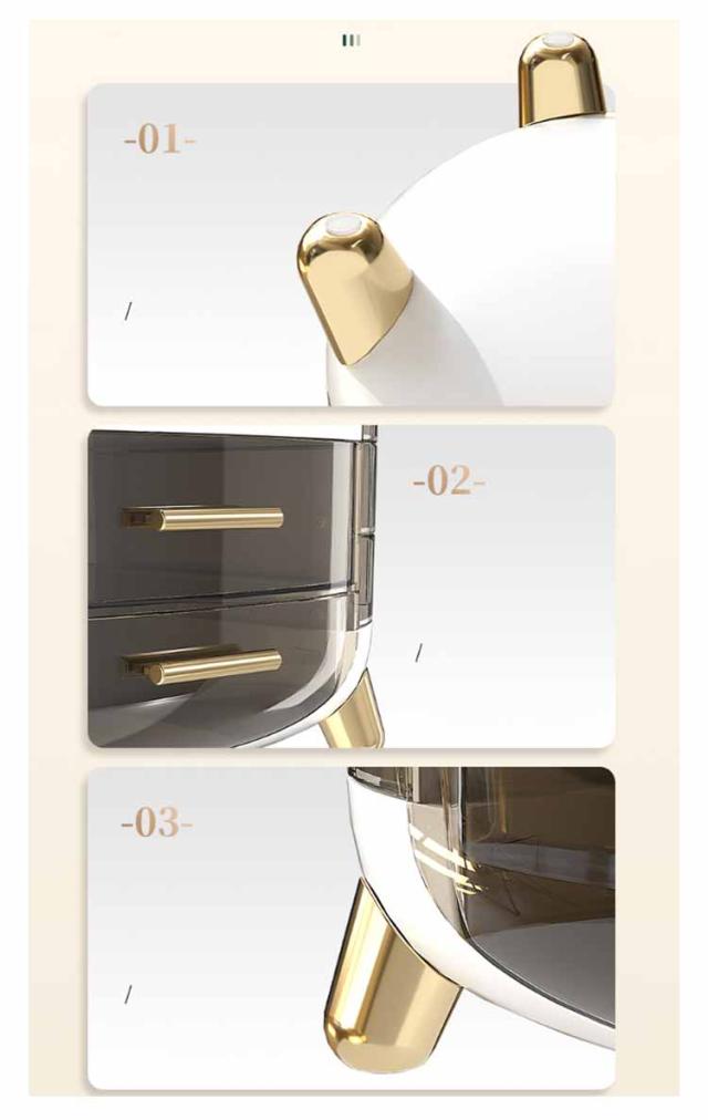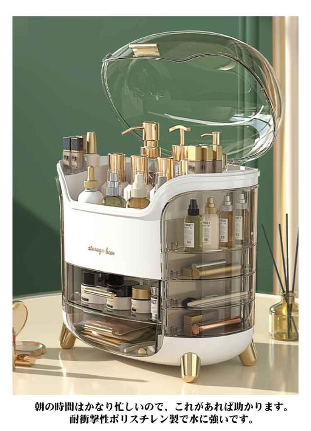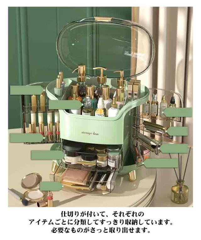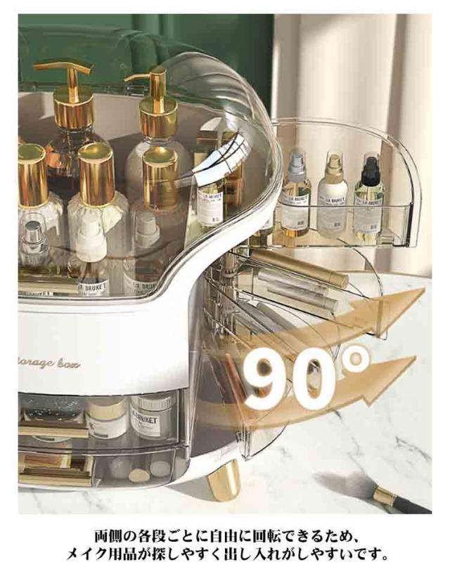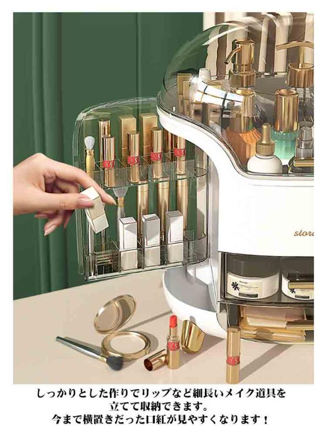 | 【分けて収納できる】 【防塵防水】 【便利な回転式】【リップ立て付き】 【引き出し付き】 バラバラになりやすい小物を美しく収納でき、お部屋やオフィスに置くのにぴったりのアイテムです。 仕切りが付いて、それぞれのアイテムごとに分類してすっきり収納しています。必要なものがさっと取り出せます。朝の時間はかなり忙しいので、これがあれば助かります。 耐衝撃性ポリスチレン製で水に強いです。蓋付きで、ホコリやウイルスからコスメを守ります。サッと拭くだけで汚れがキレイに落ちます。 両側の各段ごとに自由に回転できるため、メイク用品が探しやすく出し入れがしやすいです。 しっかりとした作りでリップなど細長いメイク道具を立てて収納できます。今まで横置きだった口紅が見やすくなります! 引き出しもスムーズに開け閉めでき、ストッパー付きで引っ張りすぎて飛び出すこともありません。 | |