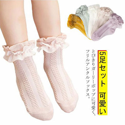 5足セット 靴下 キッズ ソックス ベビー靴下 女の子 入学式 子供 フリル アンクルソックス フォーマル レースソックス ショートソックス お受験 卒業式 卒園式 入園式 シンプル 可愛い お洒落 ホワイト 白 グリーン イエロー パープル ピンク ジュニア 無地 韓国風 送料無料