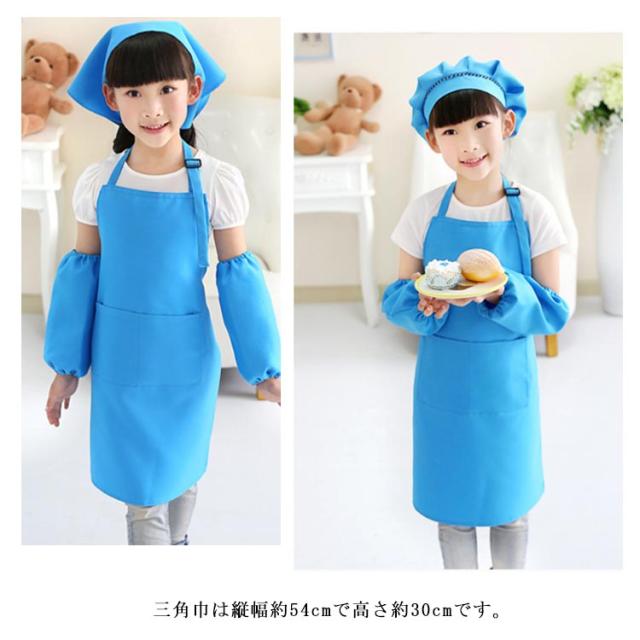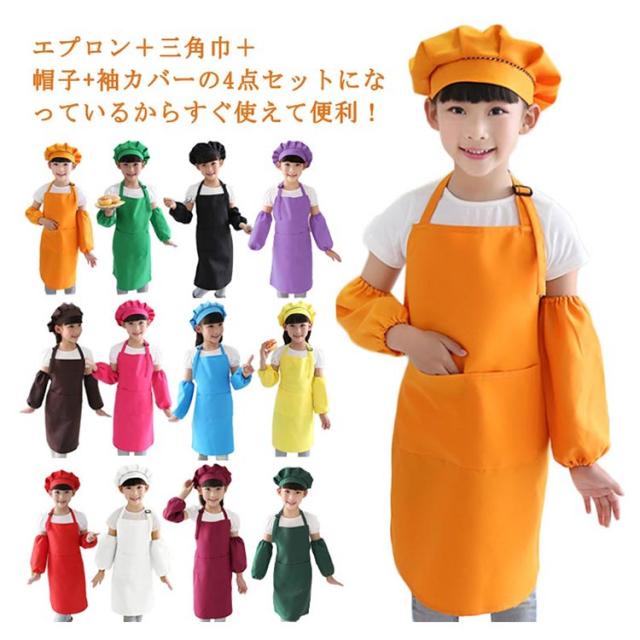 給食 保育園 粘土遊び エプロン ノーアイロン 無地エプロン4点セット 子供用 幼稚園 キッズ 小学校 エプロン+三角巾+帽子+袖カバー 中学校 絵かき 粘土遊び 調理実習 おしゃれ キッズ