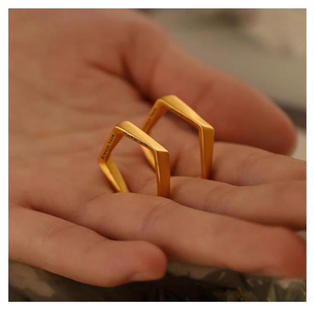シルバーリング シンプル マット 五角形 変形 指輪 人差し指 リング 925シルバー ゴールドメッキ加工 リング 5~10号 シルバーリング レディース プレゼント プチギフト 普段使い
