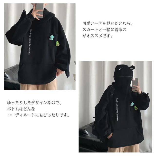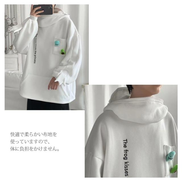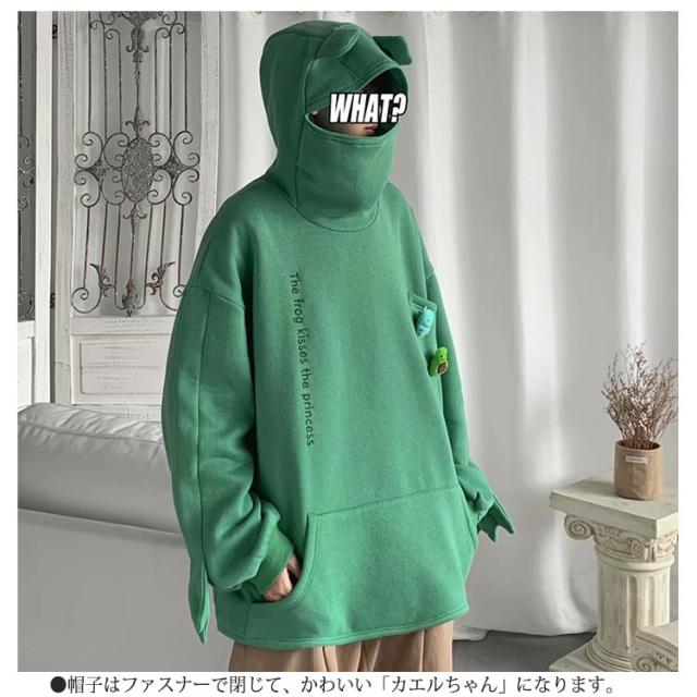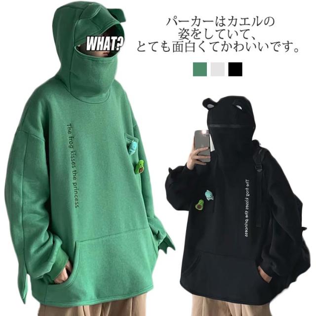 送料無料 パーカー レディース おしゃれ パーカー メンズ 長袖 秋 冬 カエル パーカー 蛙 かえる トップス レディース プルオーバー 面白い 動物 アニマル 裏起毛 ジッパー付き トレーナー レディース プルパーカー 個性的 フード付き
