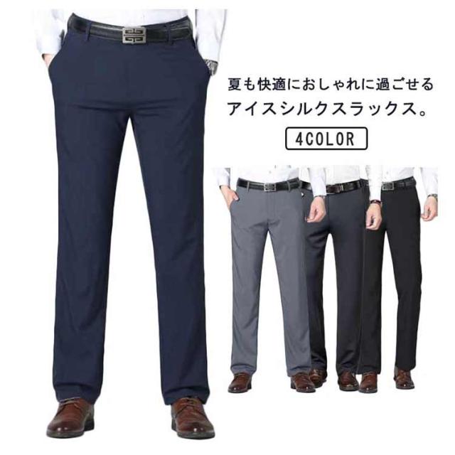 ひんやり ゴルフパンツ 無地 チノパン 男性 スラックス 薄い アイスシルクパンツ ビジネスパンツ 大きいサイズ 夏 接触冷感 涼しい 清涼 涼感 ゴルフウェア ロングパンツ ズボン アイスシルクパンツ 軽量 通気 洗える メンズ