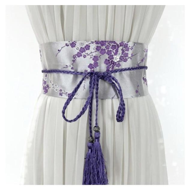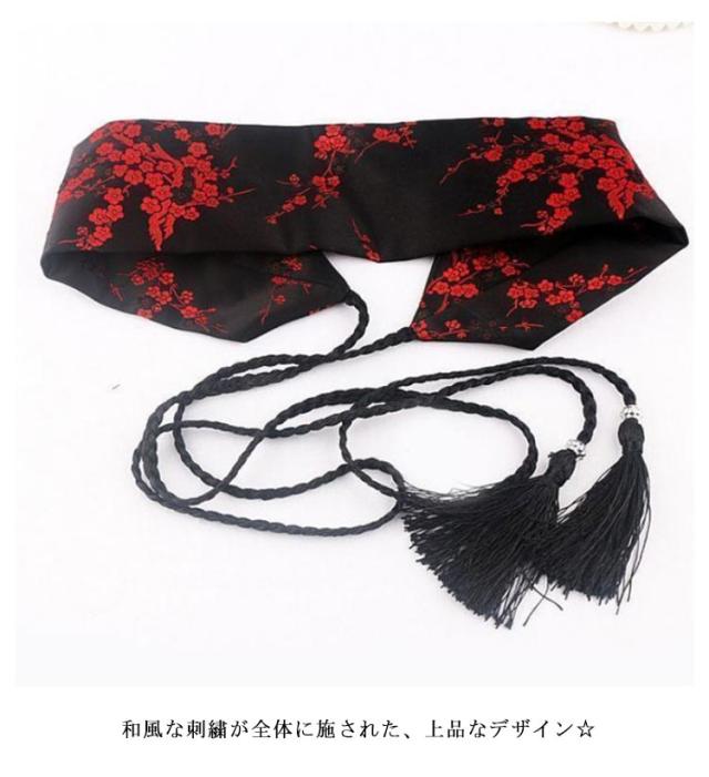 サッシュベルト 刺繍 ベルト フリンジタッセル レディース 選べる6色 個性的 帯締め風 飾り紐 太ベルト 和柄 花柄 刺繍 着物帯 ウエストマーク 和柄 光沢感 刺繍 ウエストベルト 女性用 カジュアル 大人 ハイウエスト