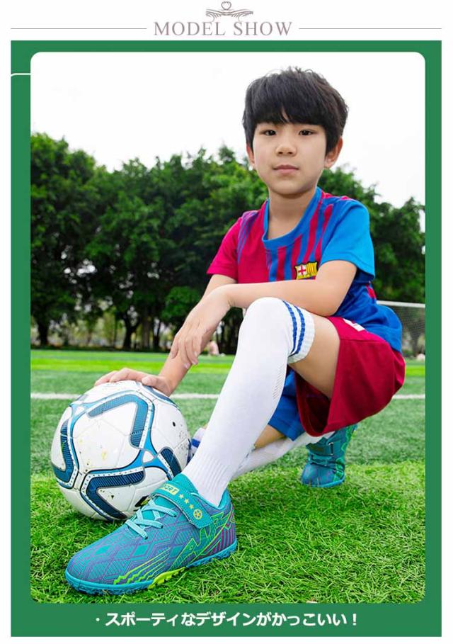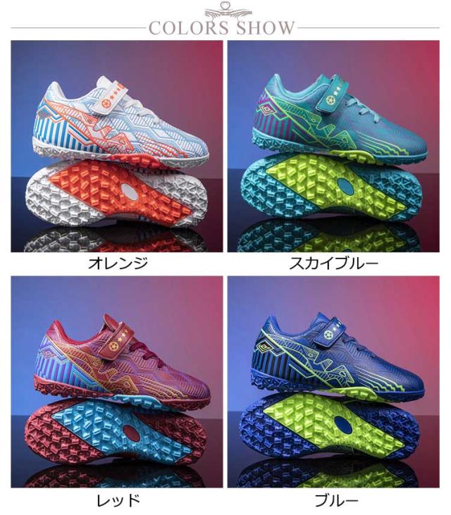 | 20.0cm〜24.5cm ・キッズ向けのサッカートレーニングシューズ ・スポーティなデザインがかっこいい! ・高耐久・軽量の合成皮革をアッパーに採用し、足にしっかりとフィットし動きやすさをサポートします。 ・アウトソールにはラバーを使用し、滑り止め機能を強化し着地時の衝撃を分散。 ・土や天然芝などさまざまなグラウンドに対応し、環境を問わず着用できます。 | |