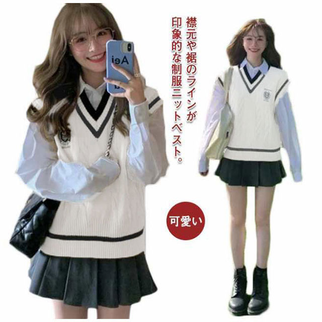 送料無料 スクールベスト 制服 スクールセーター Vネック 無地 ライン入り ニットセーター 学生服 スクール ニットベスト 秋 冬 大人気 女子高生 中学生 高校生 入学 通学 JK制服 セーラー服 女子 レディース オフィス 制服 人気 可愛い レディース シンプル 黒 白