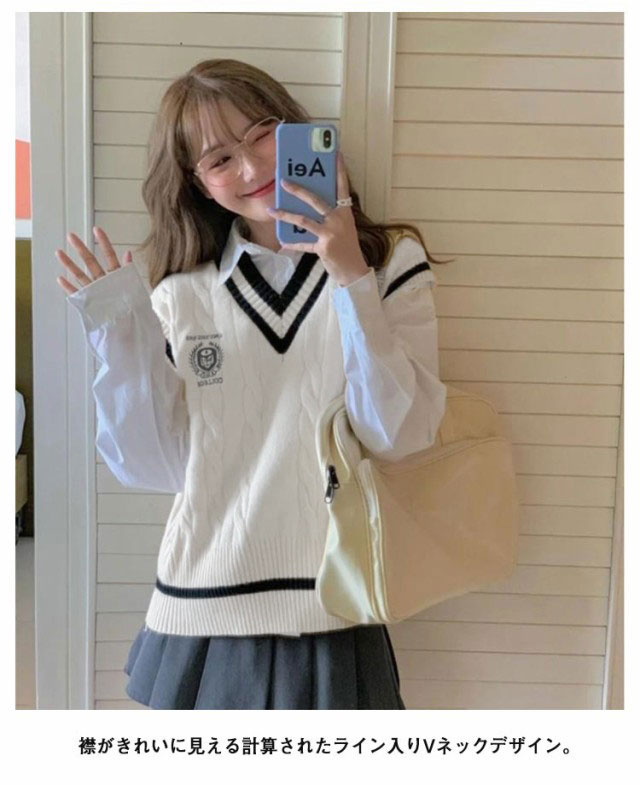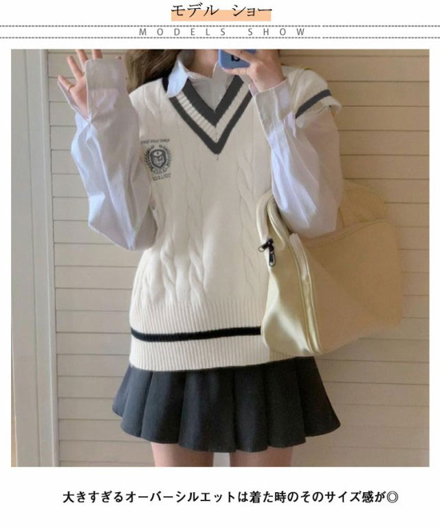 | 襟元や裾のラインが印象的な制服ニットベスト。 大きすぎるオーバーシルエットは着た時のそのサイズ感が◎ 襟がきれいに見える計算されたライン入りVネックデザイン。 長袖スクールシャツの組み合わせて、シャツのカラーを変えるだけでイメージが変わります。 年齢を選ばず、学生・女子高生の制服にも、普段使いにもお使いいただけます ! | |
