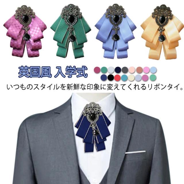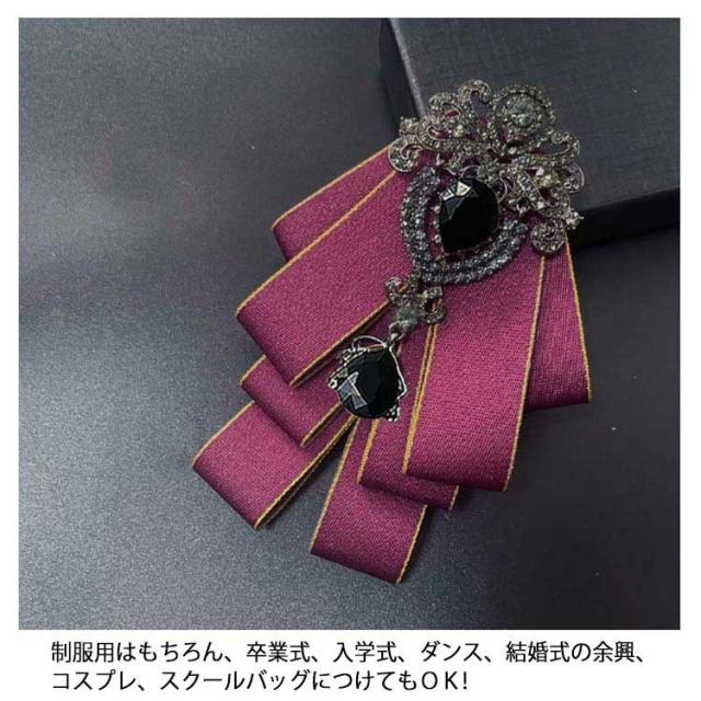 送料無料 ゴージャス 男性用 英国風 リボンブローチ ビジュー付き 入学式 ピン 卒業式 リボン 子供 ユニフォーム ベルト イギリス ブローチ お姫様 ネクタイ 大人 ファッション小物 女性用 リボンタイ