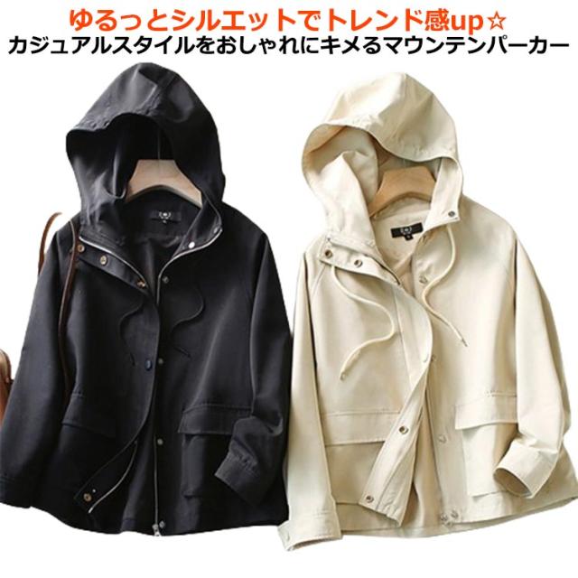 パーカー マウンテンパーカー フーディー 撥水 春 ベージュ アウター 大きいサイズ フード付き 秋 ブルゾン 送料無料 ショート丈 ジャケット 大人 長袖 ウインドブレーカー きれいめ カジュアル 防水 無地 レディース
