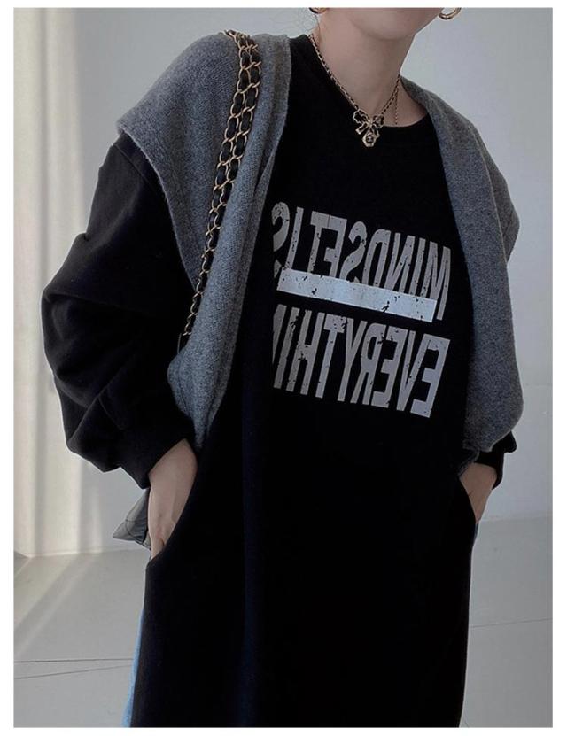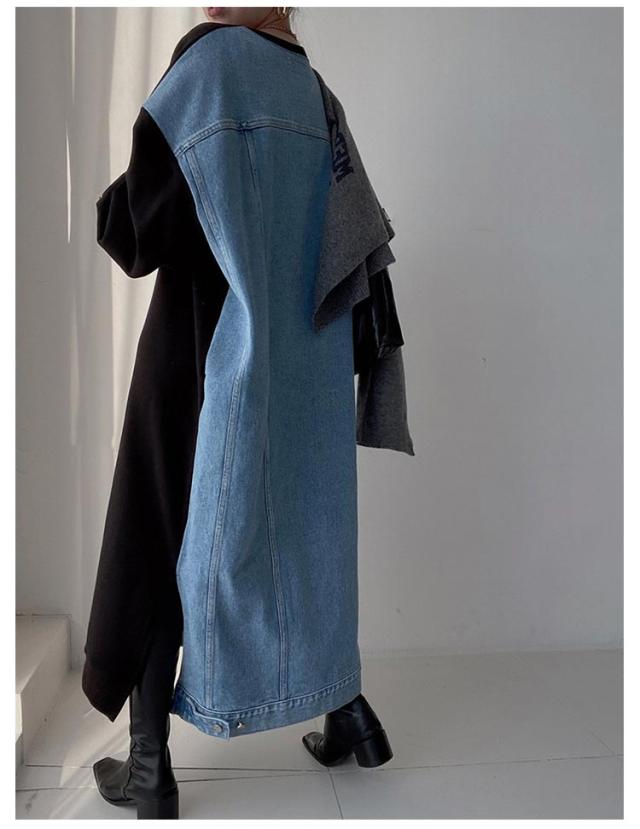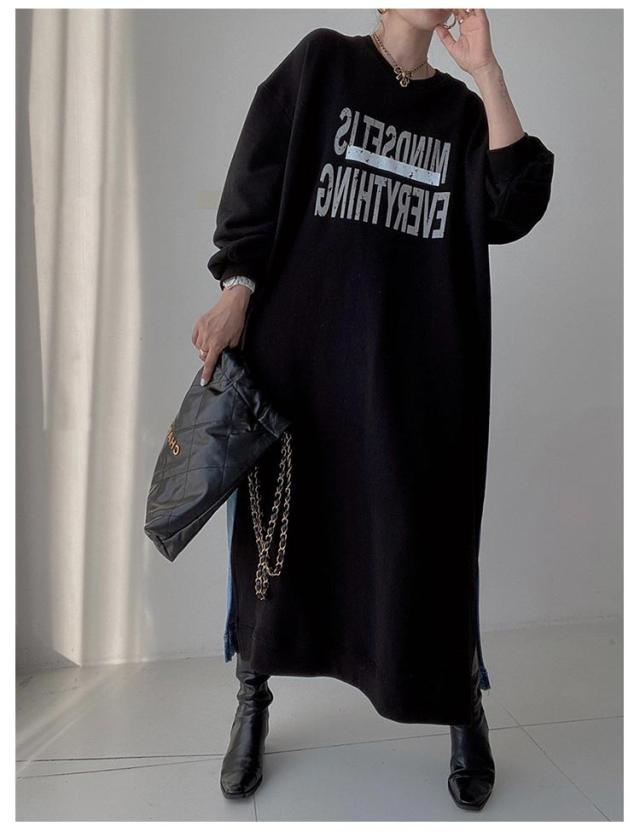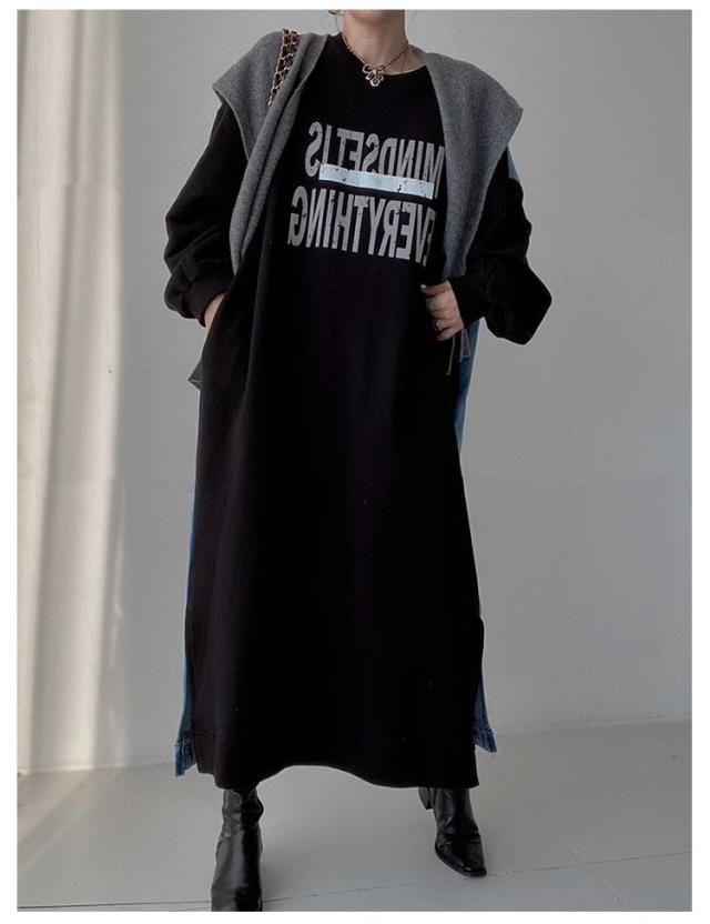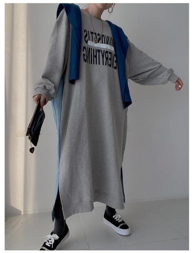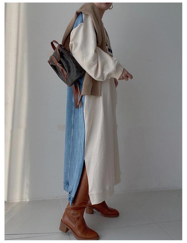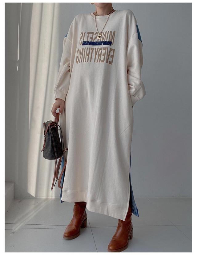 マキシ丈 スウェットワンピース ロングトレーナー デニム レディース 送料無料 デニムワンピース 春 スウェット 長袖ワンピース ドロップショルダー クルーネック 春 秋 オーバーサイズ マキシワンピース ゆったり 体型カバー カジュアル トレーナー 長袖
