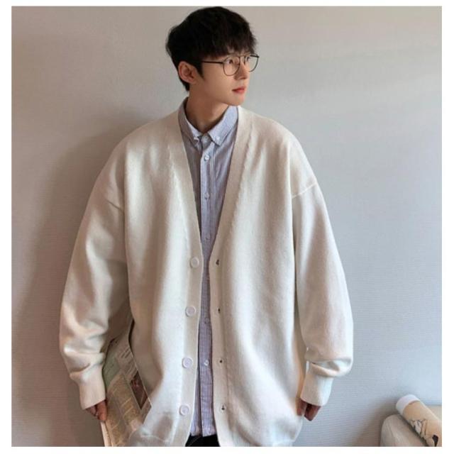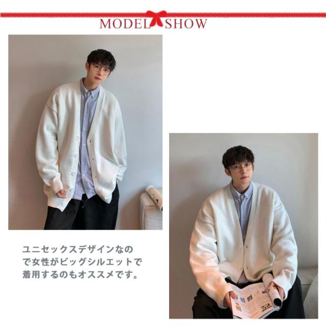 Vネック カーディガン ニットカーディガン シンプル メンズ 春 秋 冬 ボタン セーター 無地 カジュアル ジャケット セーター 韓国ファション おしゃれ ゆったり アウター ビッグシルエット オーバーサイズ 送料無料