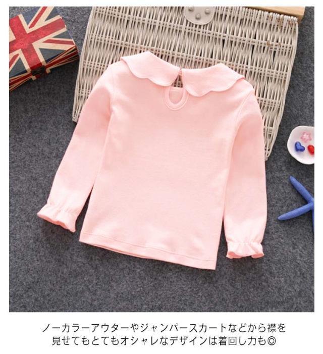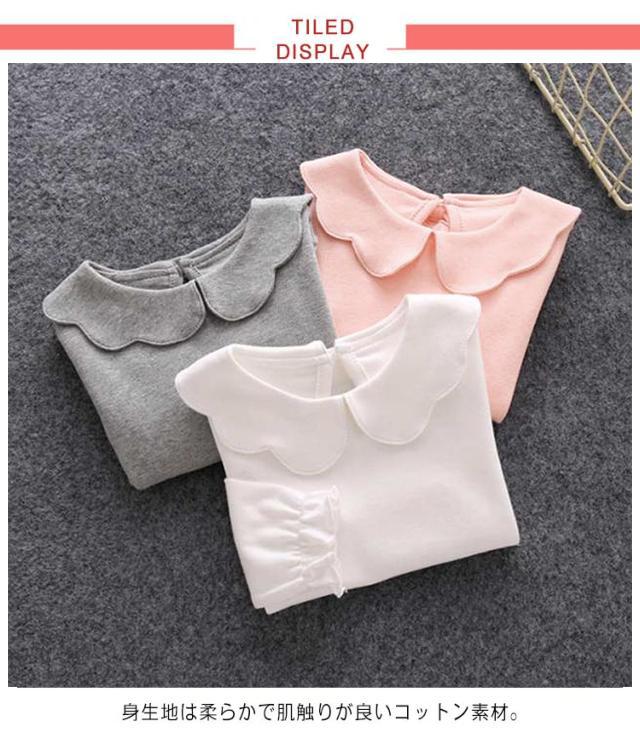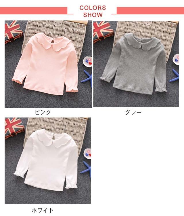 長袖 入園式 80 女の子 キッズ 結婚式 子供服 ベビー 120 130 丸襟 Tシャツ 子供 女児 カットソー ブラウス グレー 90 110 ロンT ピンク 入学式 綿 無地 トップス シンプル 通園 通学 お出かけ 業式 発表会 七五三 100
