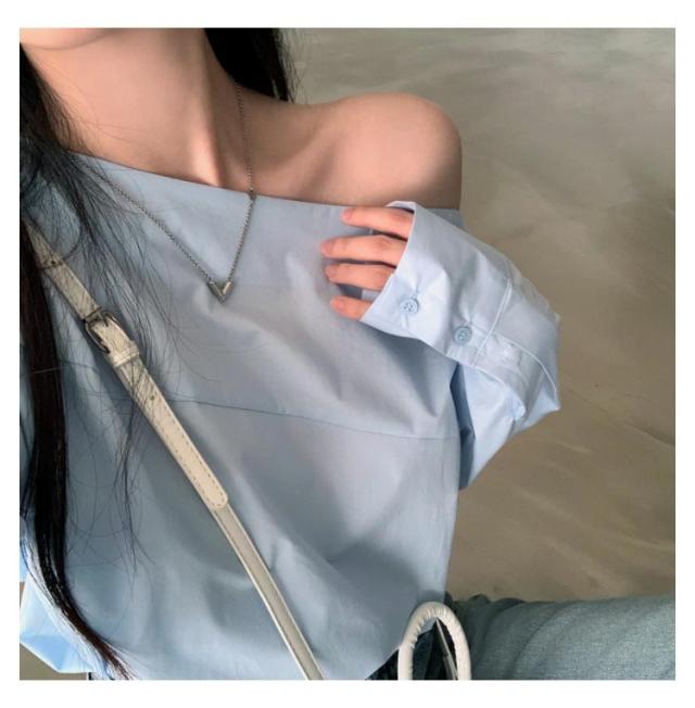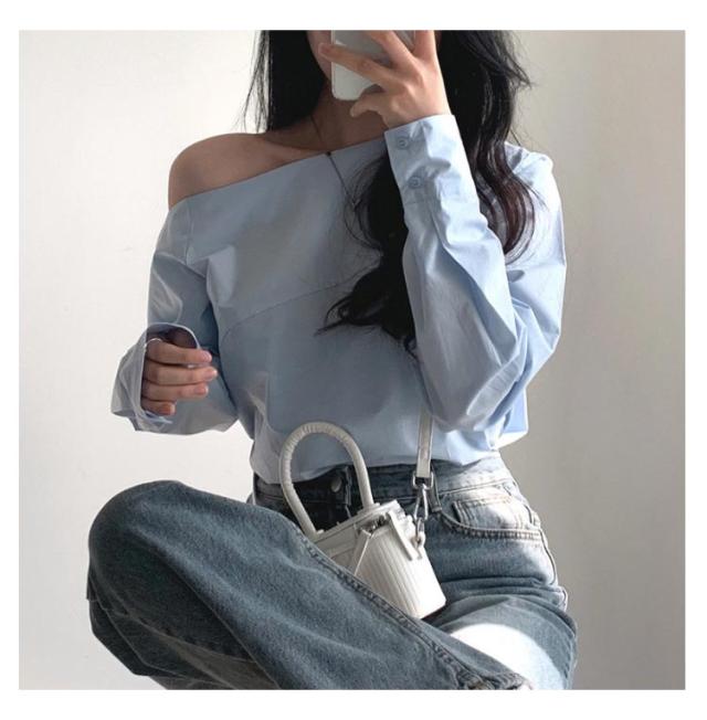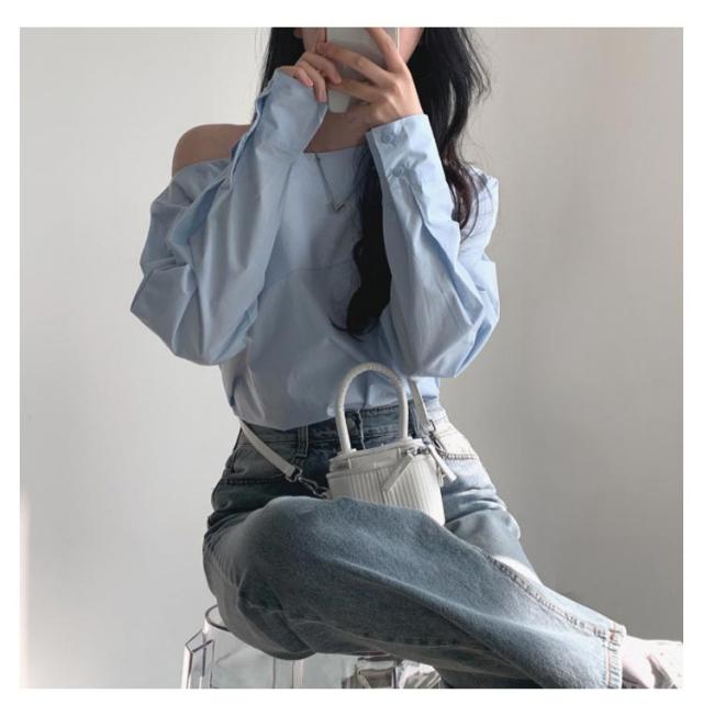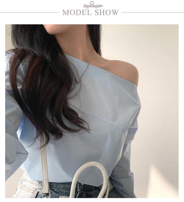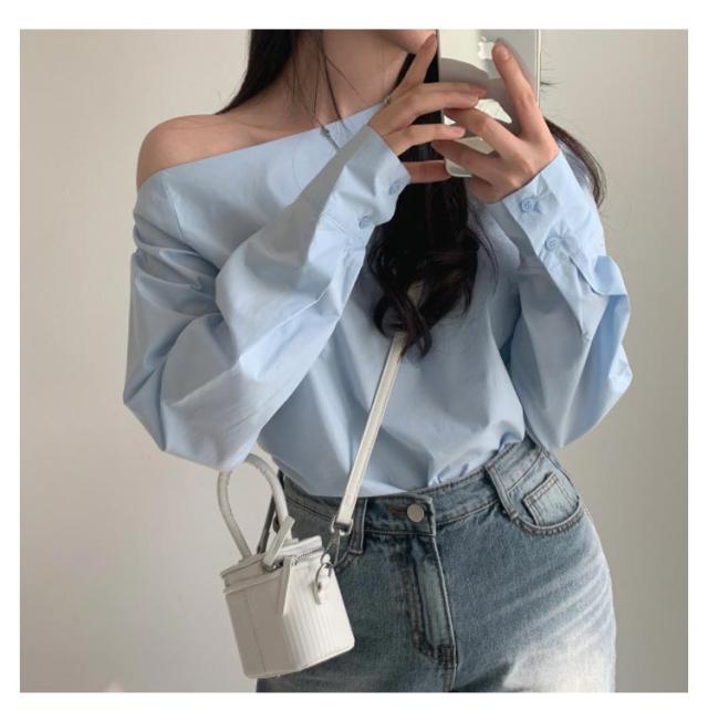 オフショルブラウス 無地 シャツ オフショルダートップス レディース オフショルダーブラウス オフショル ブルー 長袖ブラウス ブラウス 長袖 オフショルダーシャツ 春新作 春 夏 白 ホワイト トップス