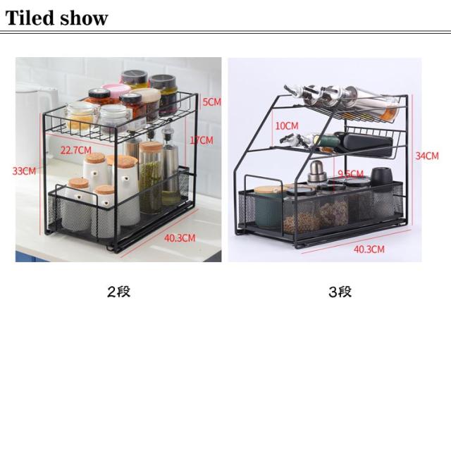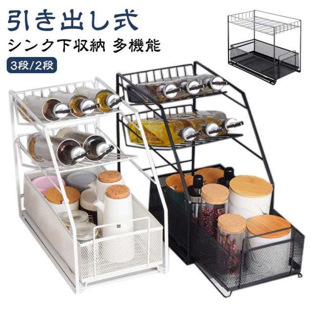 スライド式 収納 シンク下収納 棚 キッチン収納 キッチン用品 3段/2段 キッチン収納 スライド シンク下収納ラック ラック シンク下 収納 キッチンラック 流し台下 ラック 洗面台下 コンロ下 収納 スチール コンロ下収納 引き出し