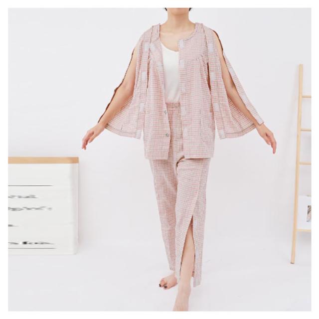 | 上下全開できる介護用パジャマ!ファスナータイプ・マジックテープタイプ 両袖から肩まで・前面・両裾からウエストまでの3カ所をフルオープンすることが可能。 腕部分が開閉できることで、点滴や腕にマヒがある人の着替え、清拭が楽にできます。 裾からウエストまで全開になるので、寝たり、座ったりの状態でも着替えやおむつ交換が可能。 素材は肌にやさしい綿生地が採用されており、着心地の良さはもちろん、保温性と蒸れにくさに優れています。 着替え、おむつ交換、医療処置などすべて寝転んだ状態で楽にできます。 通年対応できるので、病院・老人ホームなどでの使用におすすめです。 | |