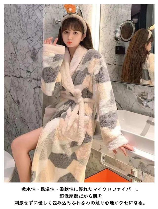 バスローブ ガウン マイクロファイバー タオル地 厚手 ふわふわ もこもこ レディース 部屋着 ルームウェア 着る毛布 バスタオル パジャマ ロング ガウン ベルト付き 送料無料 おうち時間 温かい 防寒 洗濯可能 洗える マタニティ 出産祝い 秋 秋冬 可愛い ギフト プレゼント