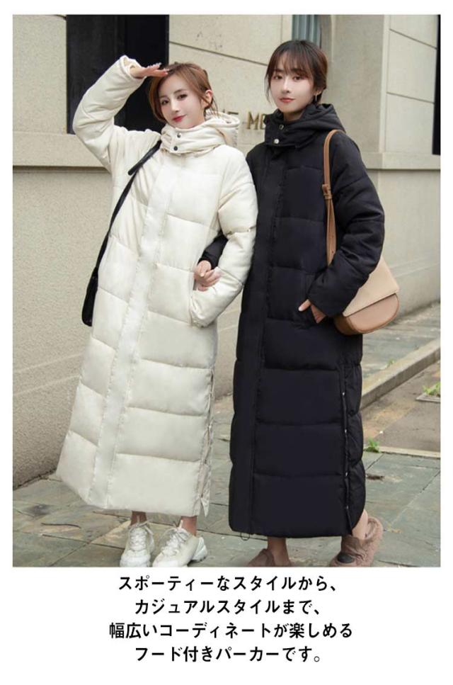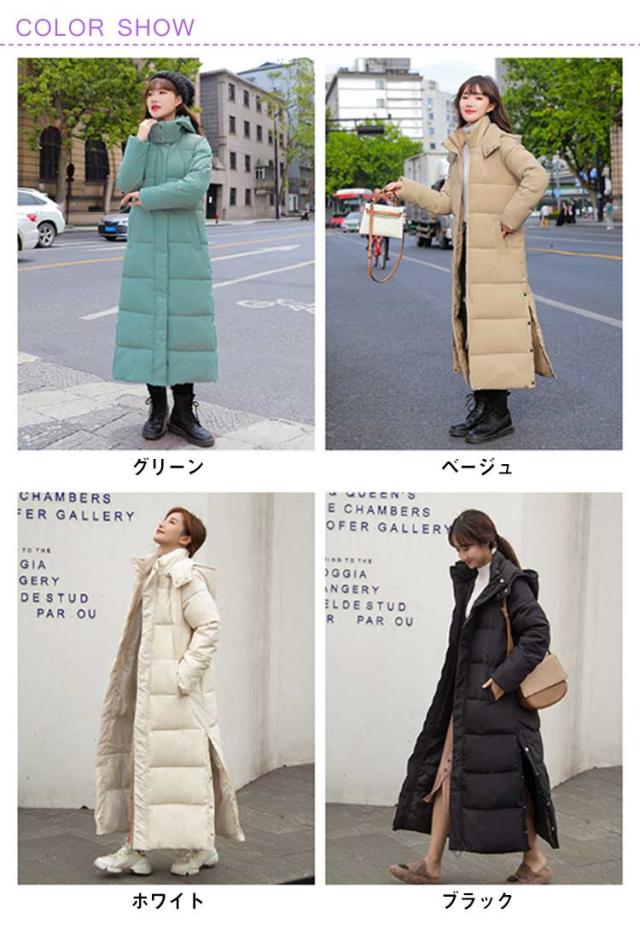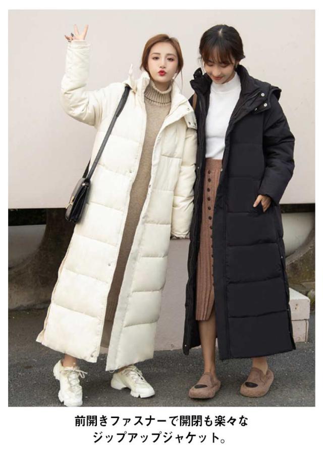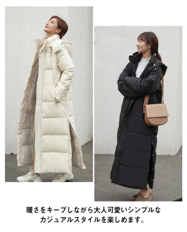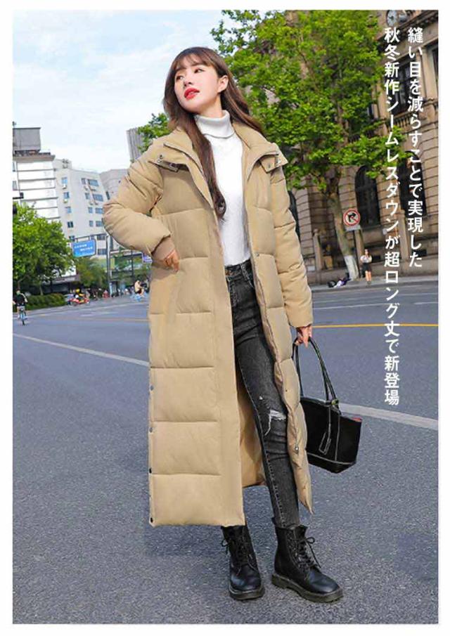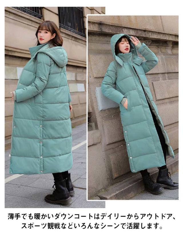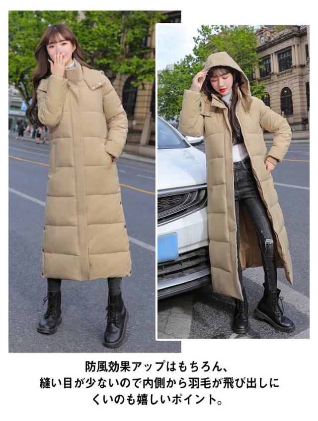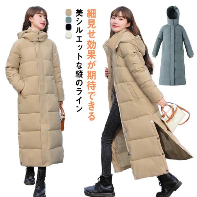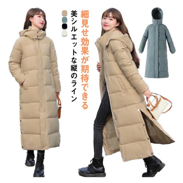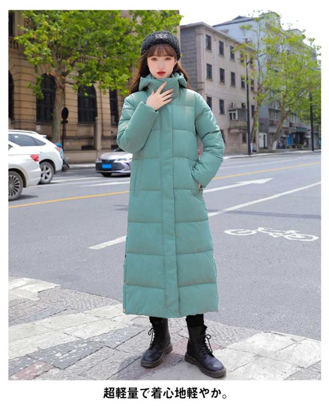 レディース 超ロング 中綿ジャケット フード スタンドカラー Iライン 着痩せ 大きいサイズ ロング 冬 秋 きれいめ コート アウター ダウン 軽量 超ロング ベンチコート ロングコート フード パーカー ジップアップ